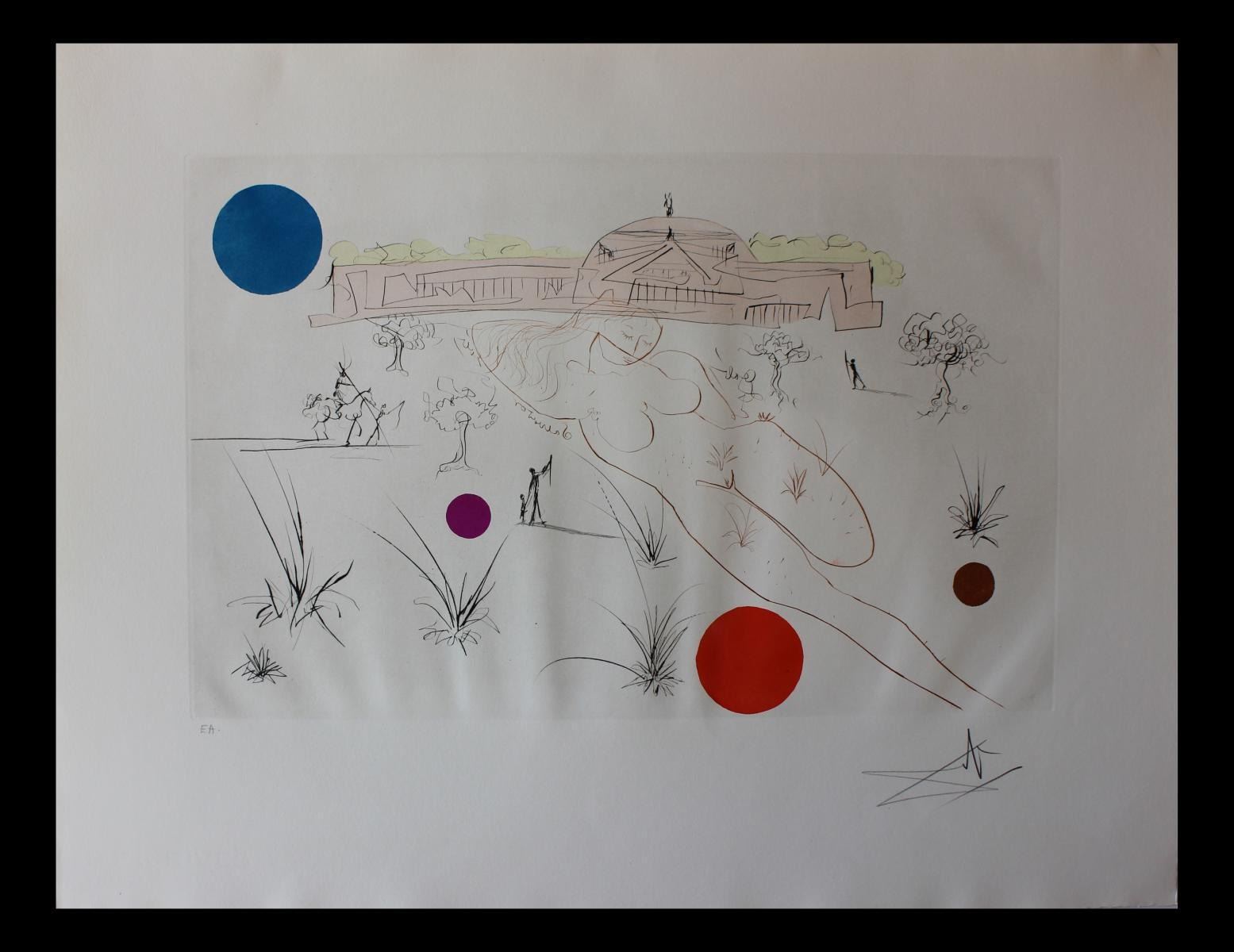 Artist: Salvador Dali. Medium: Original Etching with color. Title: Museum of Science and Industry. Size (Unframed): 19.5" x 25.5". Certificate of Authenticity: From Frank Hunter. Reference# 10462.