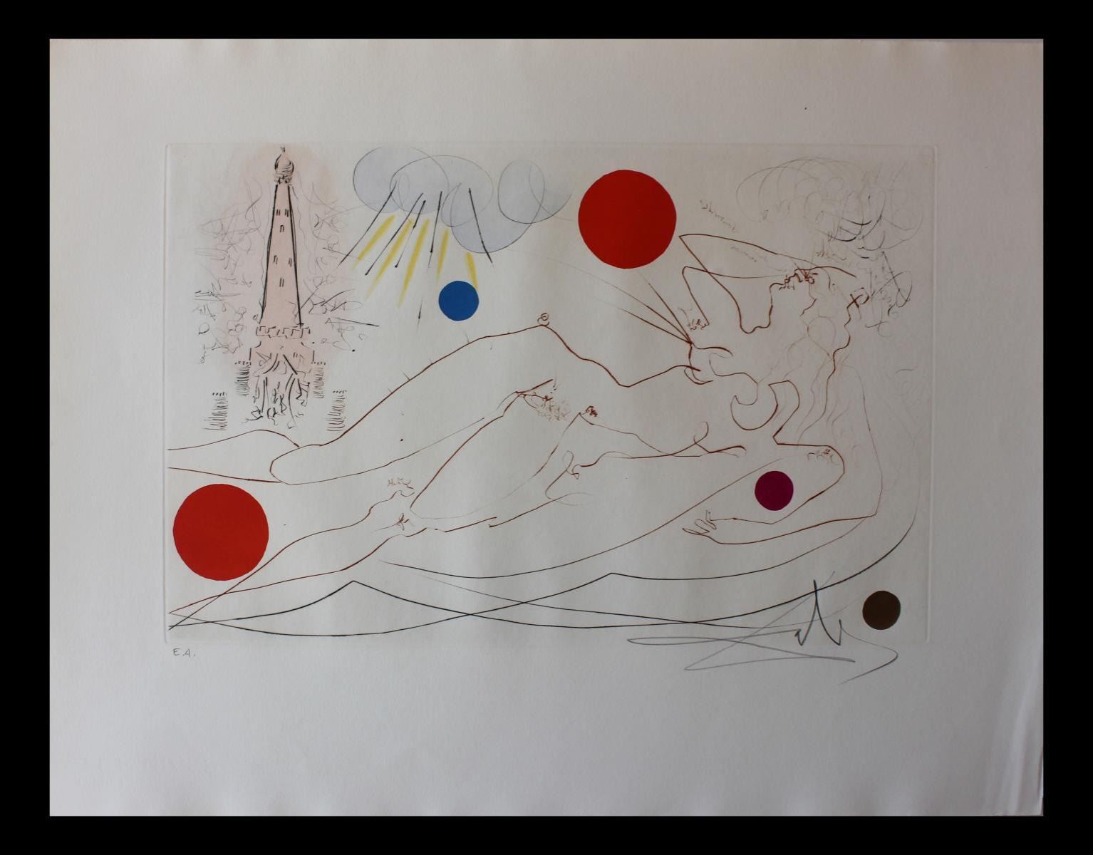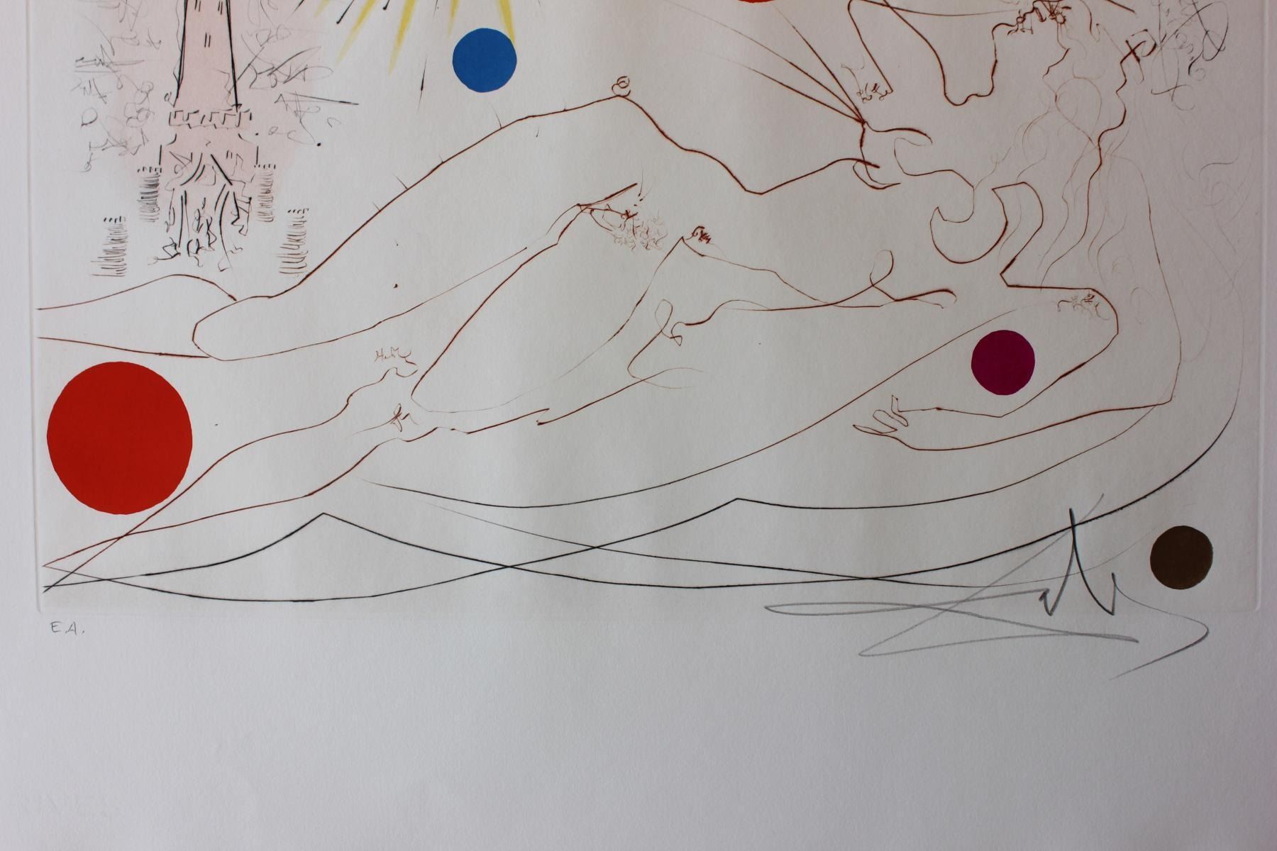 Artist: Salvador Dali. Medium: Original Etching with color. Title: Water Tower. Size (Unframed): 19.5" x 25.5". Certificate of Authenticity: From Frank Hunter. Reference# 10463.