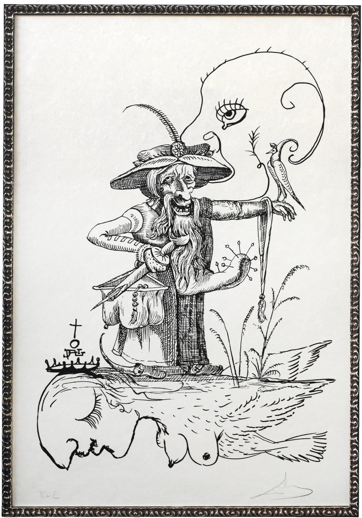 Artist: Salvador Dali. Medium: Original Lithograph from Gouache and Collage. Title: Untitled. Size (Unframed): 30" x 22". Size (Framed): 43" x 34". Certificate of Authenticity: Is included. Additional: Custom framed , From the set titled Les Songes Drolatiques de Pantagruel. Authneticated on verso. Reference# 14805.