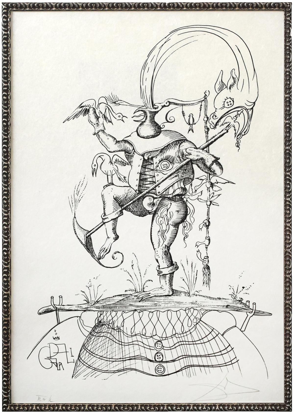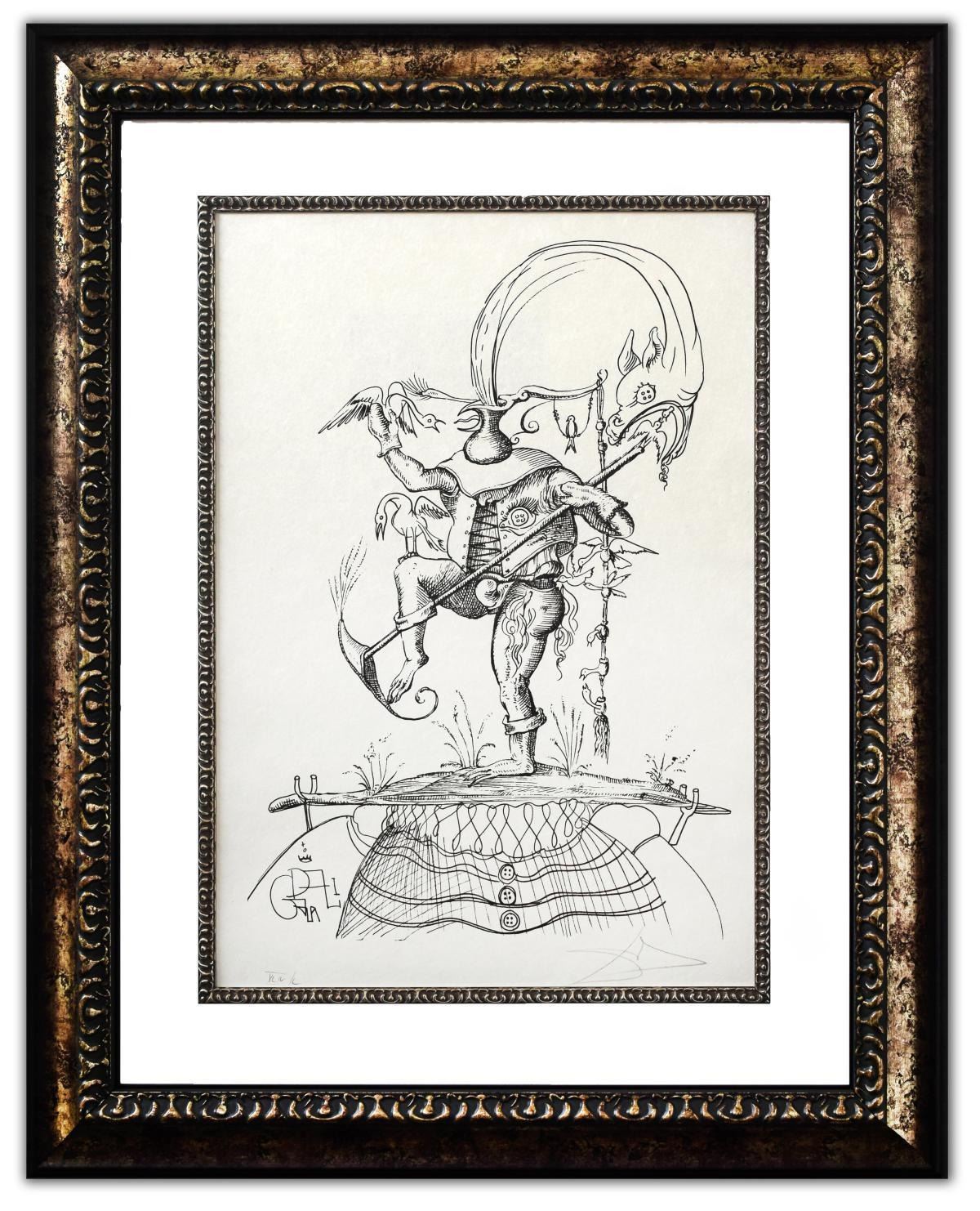 Artist: Salvador Dali. Medium: Original Lithograph from Gouache and Collage. Title: Untitled. Size (Unframed): 30" x 22". Size (Framed): 43" x 34". Certificate of Authenticity: Is included. Additional: Custom framed , From the set titled Les Songes Drolatiques de Pantagruel. Authneticated on verso. Reference# 14804.