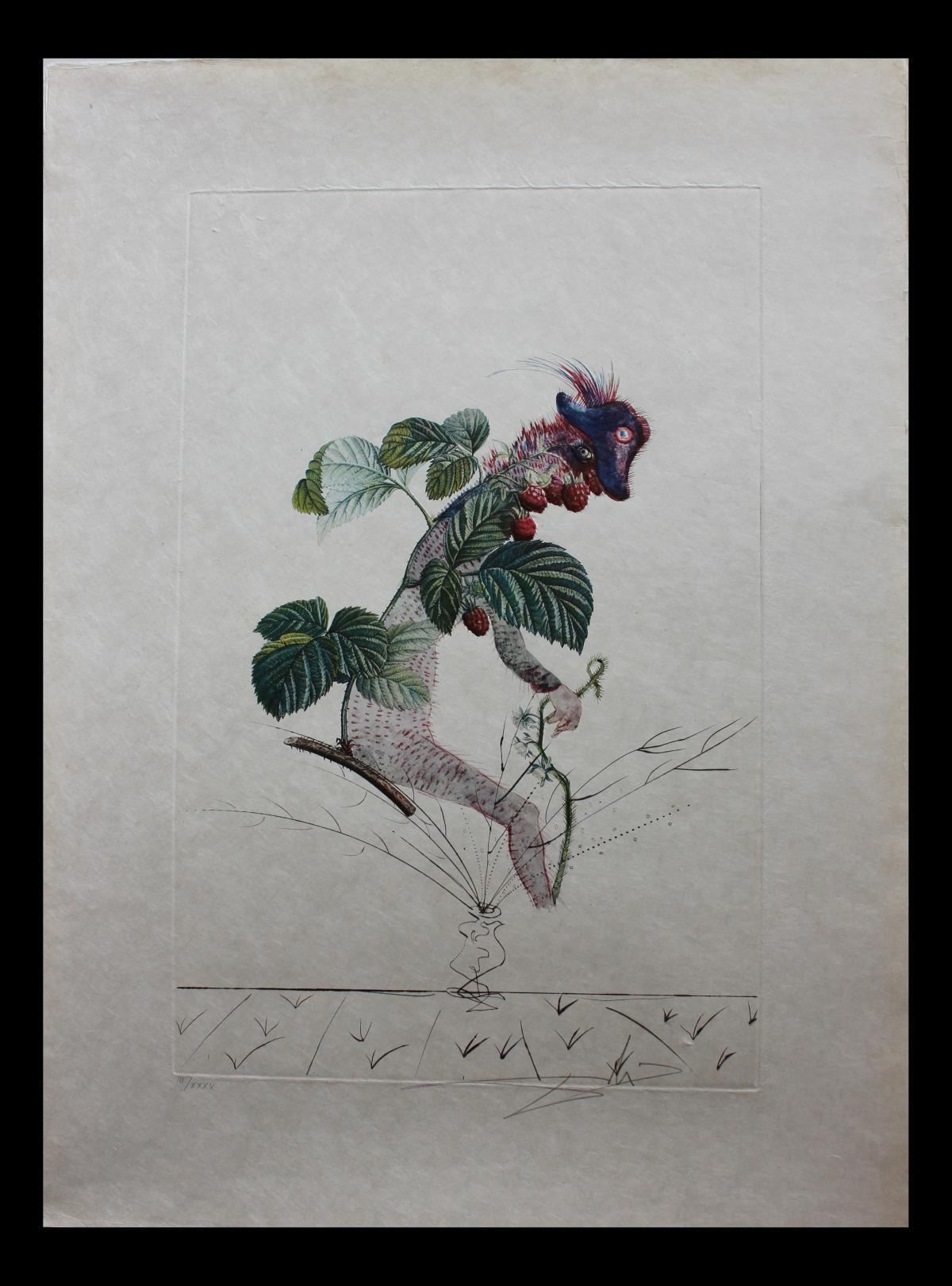 Artist: Salvador Dali. Medium: Photolithograph with original engraving and embossing. Title: Raspberry. Size (Unframed): 30" x 22". Certificate of Authenticity: From Frank Hunter. Reference# 10458.