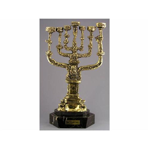 [Spanish 1904-1989] CHANDELIER DE LA PAIX (PEACE MENORAH); 1980 Bronze sculpture with gold patina on a marble base; Ed. #31/250