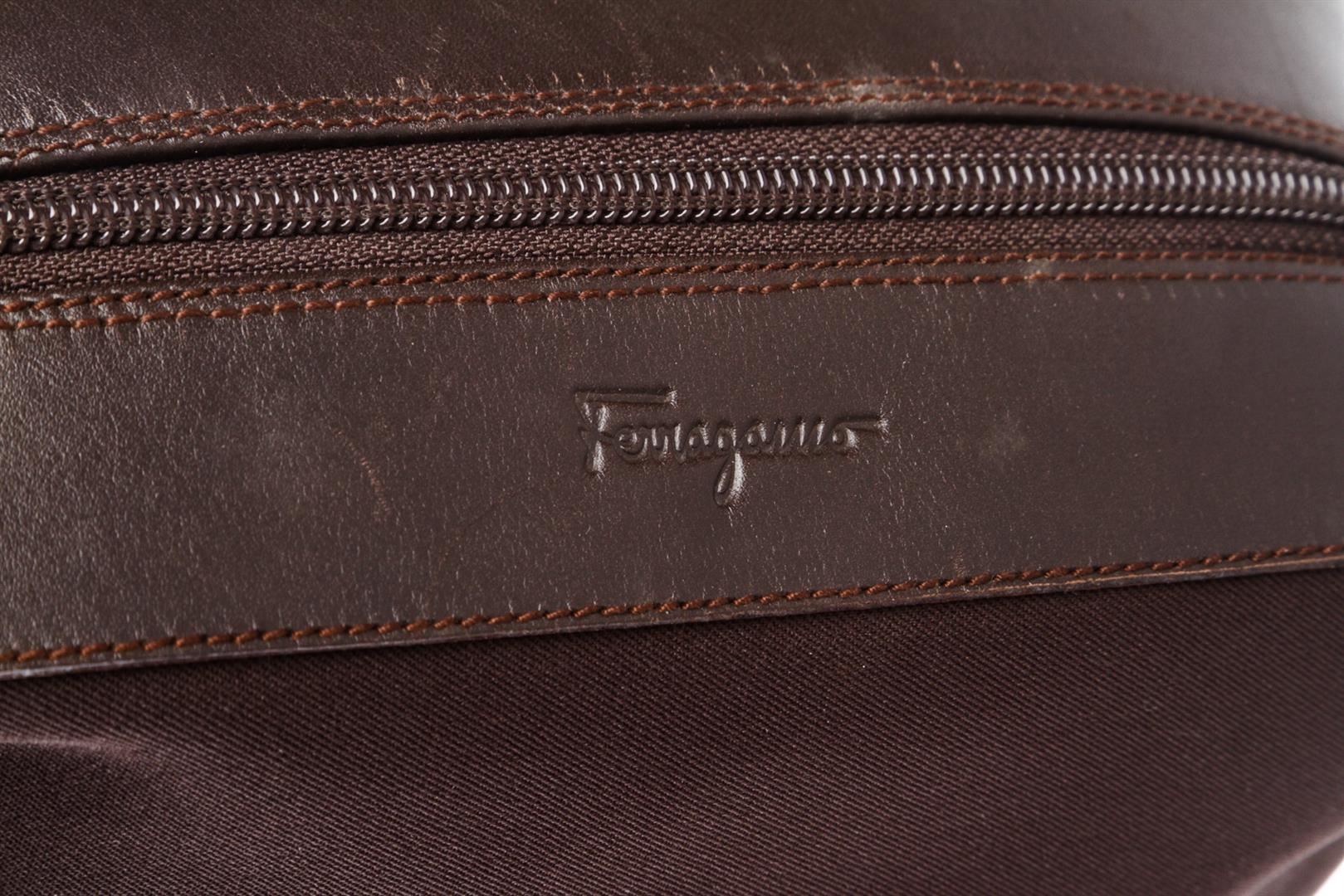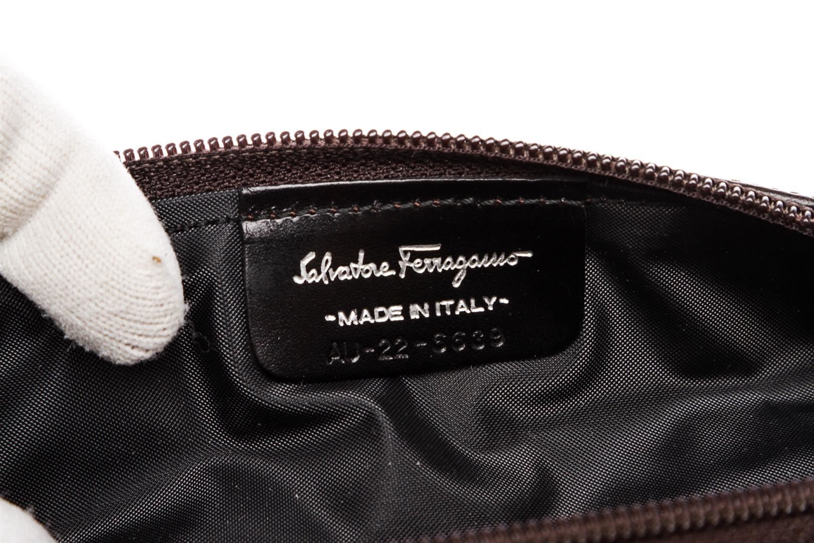 One Salvatore Ferragamo Brown Canvas Leather Pouch. Overall zipper closure. Interior is nylon lined.