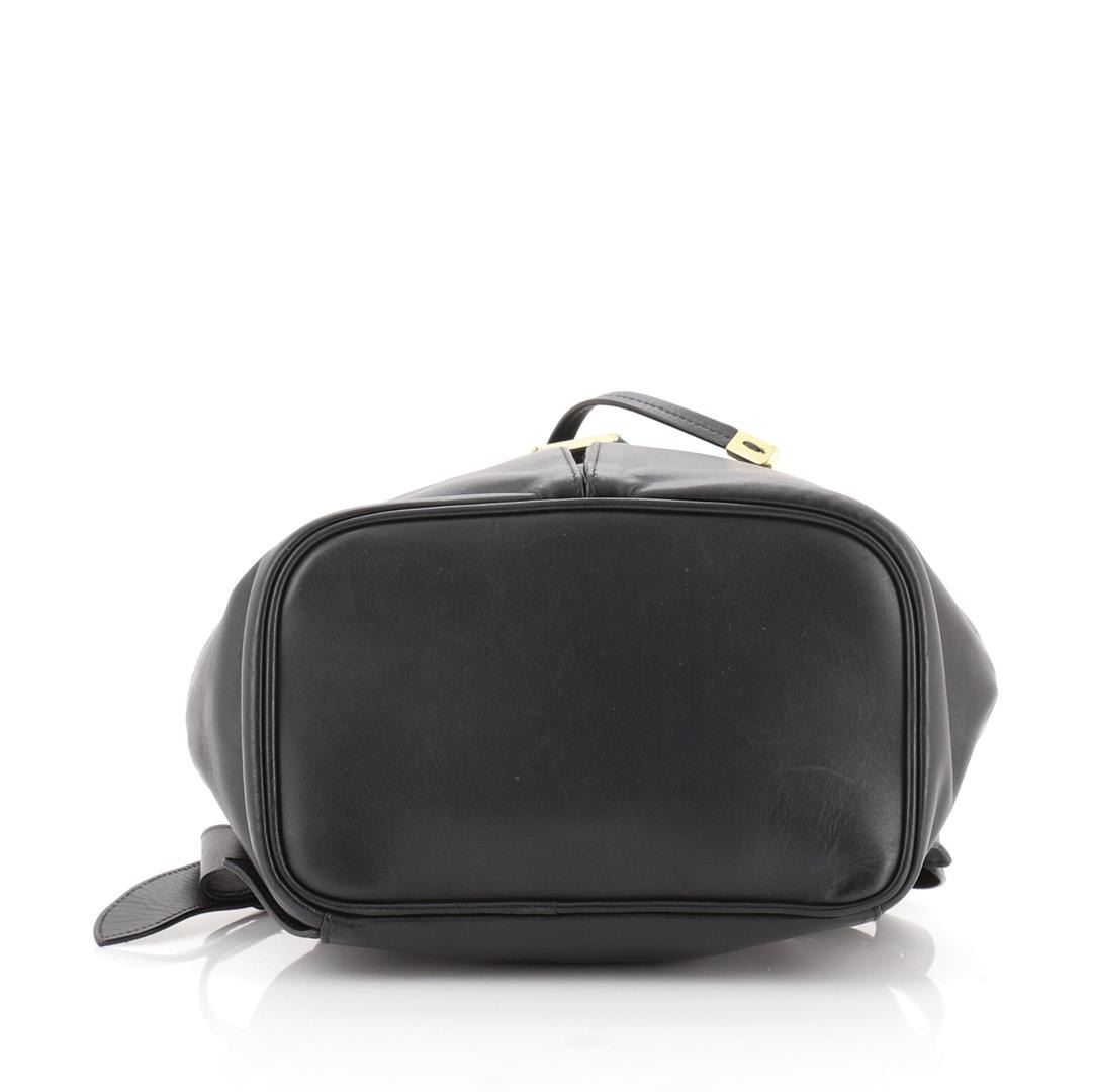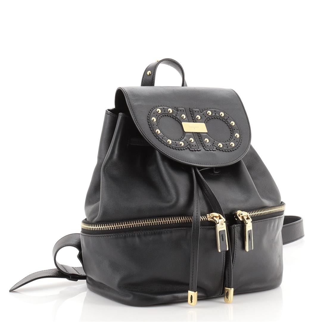Salvatore Ferragamo Gancini Flap Drawstring Backpack Leather Mini Black Condition Details: Loss of shape on exterior. Wear and moderate scuffs on exterior and interior opening, scratches and tarnish on hardware. eight 9", Width 7", Depth 4.5", Stra