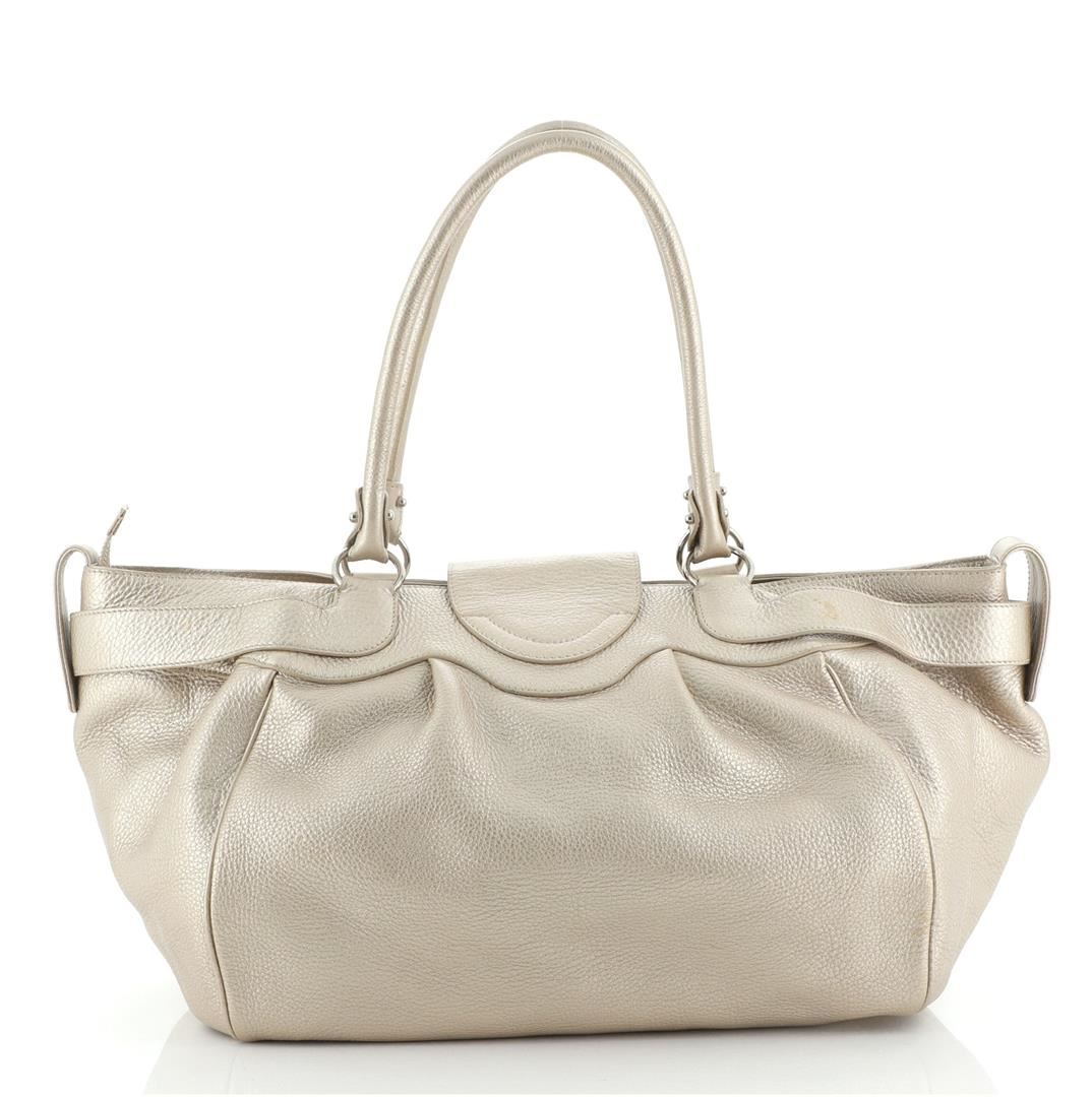 Salvatore Ferragamo Gancio Lock Buckle Leather Tote Leather Large Gold, Neutral