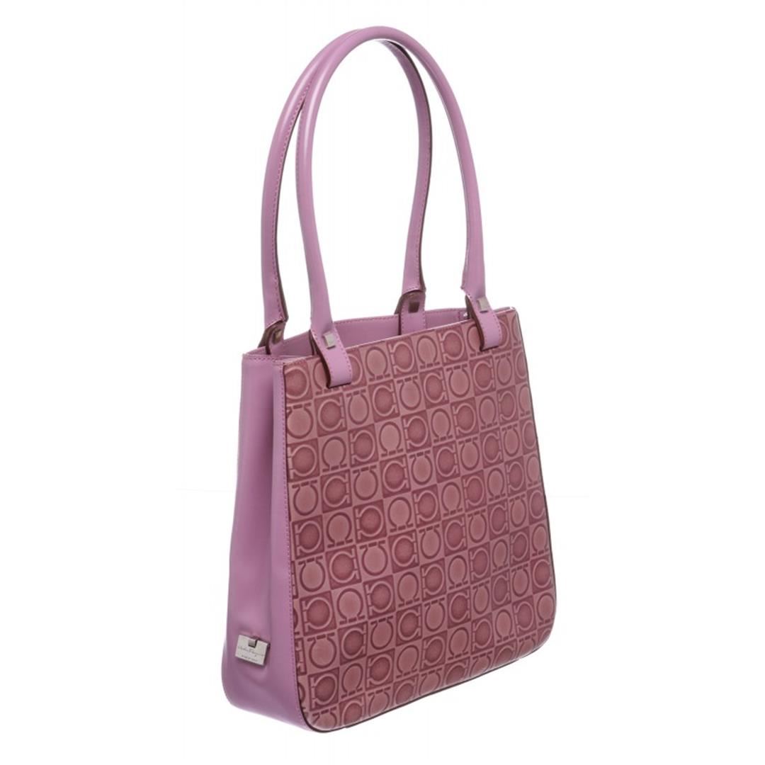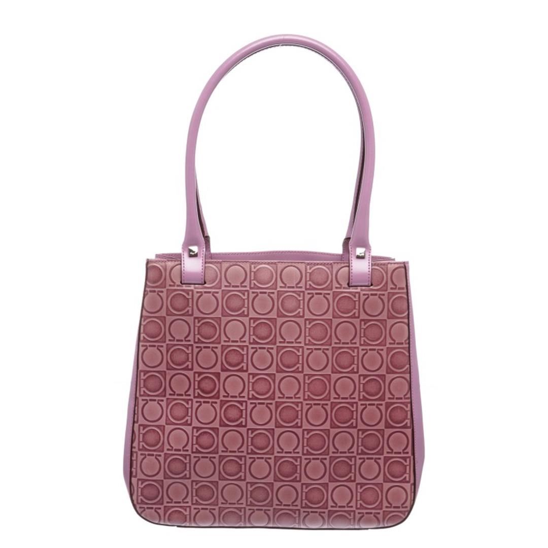 One Salvatore Ferragamo Purple Embossed Leather Shoulder Handbag. Crafted out of purple embossed leather, silver tone hardware, dual rolled shoulder straps. Inner beige fabric lining and side zip pocket. Item is pre-owned.