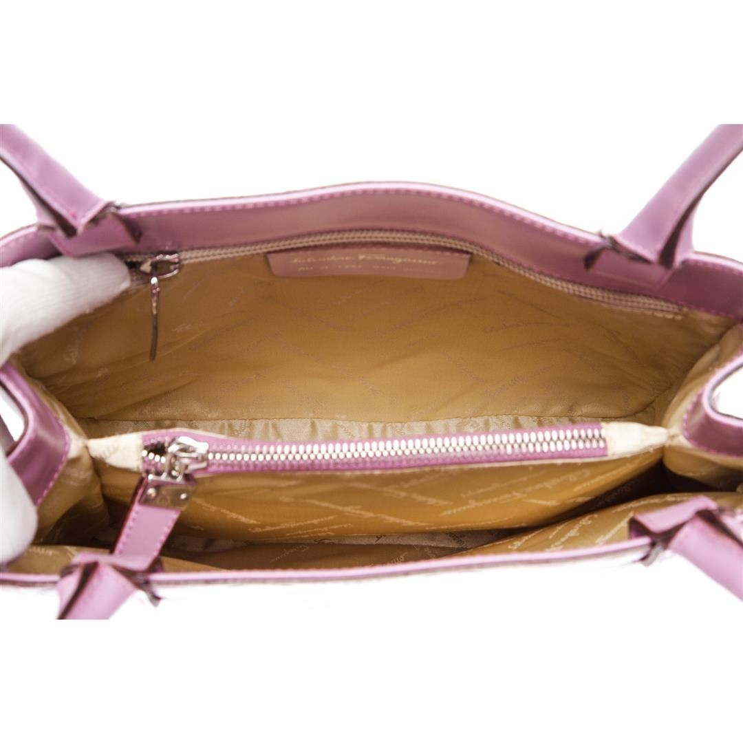 Crafted out of purple embossed leather, silver tone hardware, dual rolled shoulder straps. Inner beige fabric lining and side zip pocket.