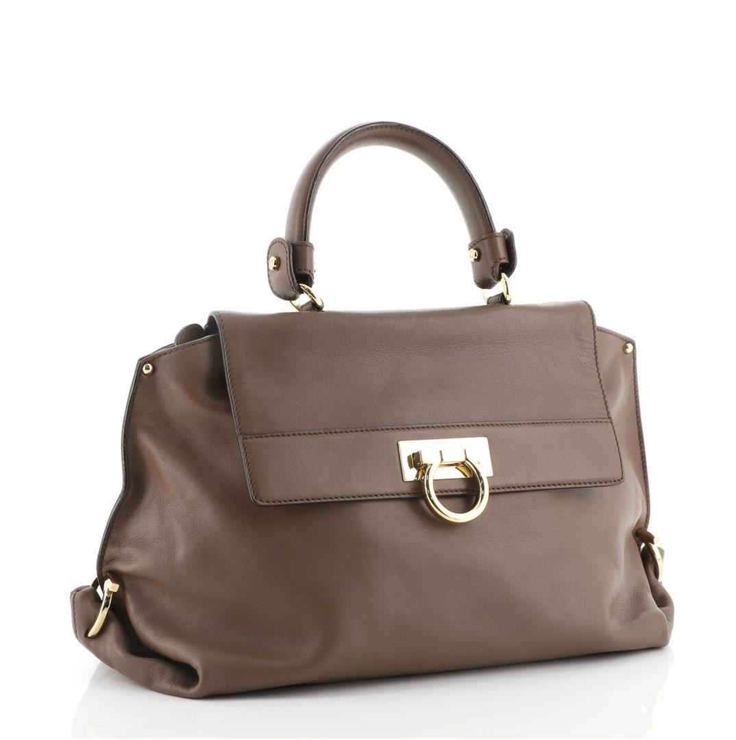 Salvatore Ferragamo Sofia Satchel Smooth Leather Medium Brown Smooth Leather