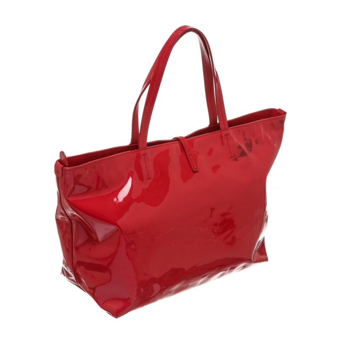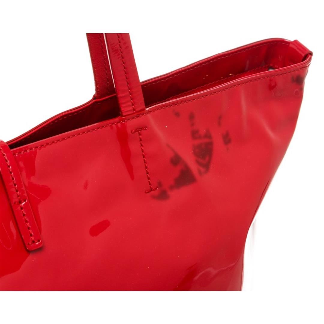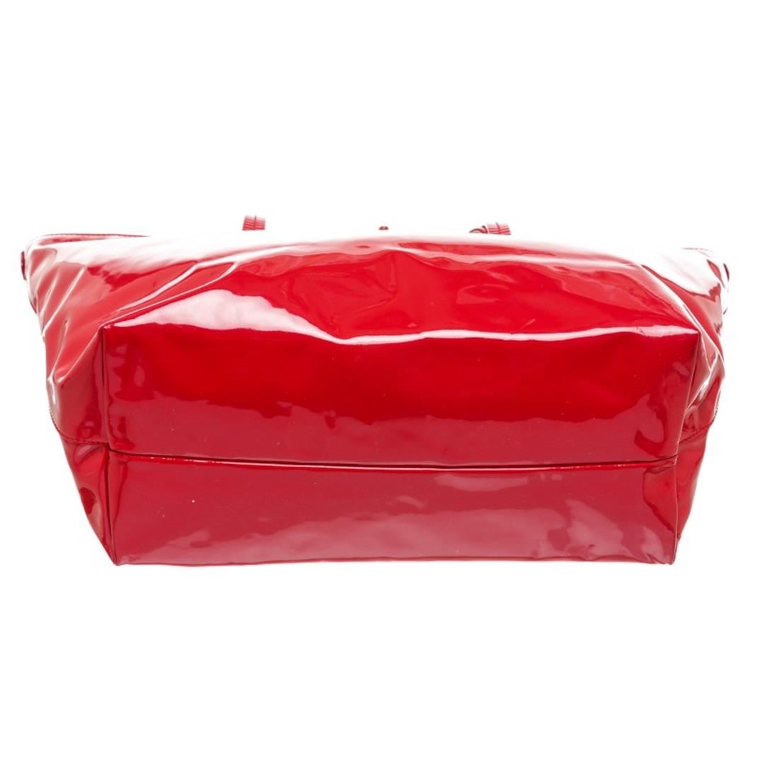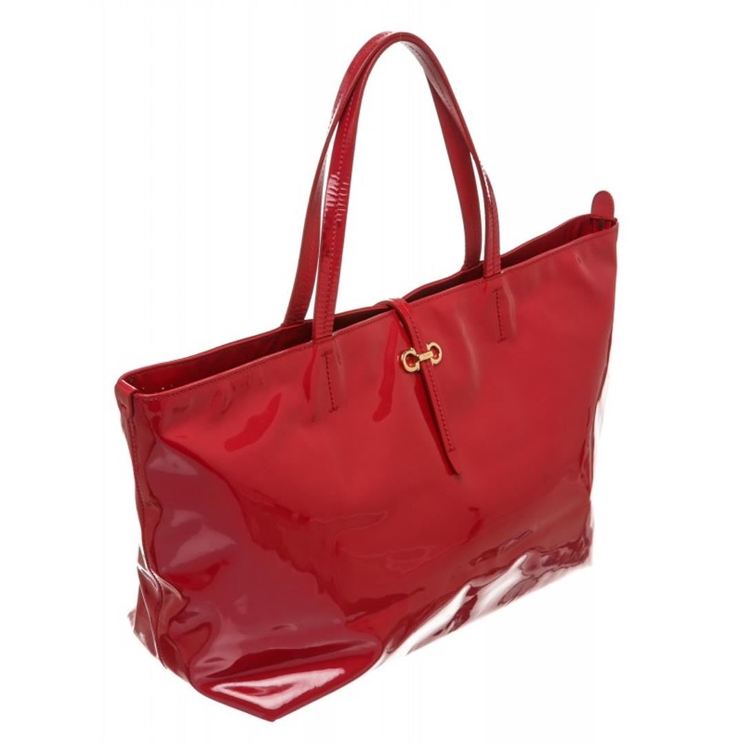 Salvatore Ferragamo Red Vinyl Tote Bag. Overall Zipper Closure with lined interior with side zipper and two sideip pockets. Light dark stain on exterior rear on bag. A versatile tote for everyday use. Item is pre-owned.