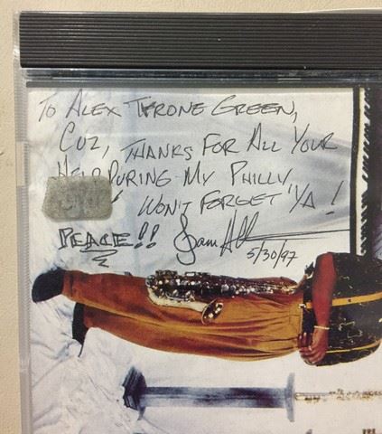 Sam Allen CD, titled "Saxtified", autographed by Sam Allen. Jewel case has cover/booklet of album information, as well as the back cover with song listings.
