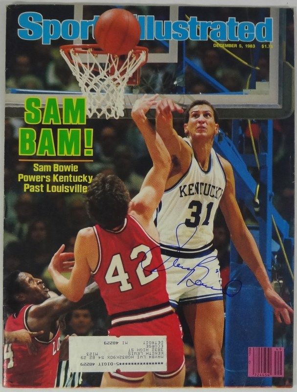 SAM BAM! SAM BOWIE POWERS KENTUCKY PAST LOUISVILLE. Signed with blue sharpie by Sam Bowie. COA Est. $20.00 - $30.00