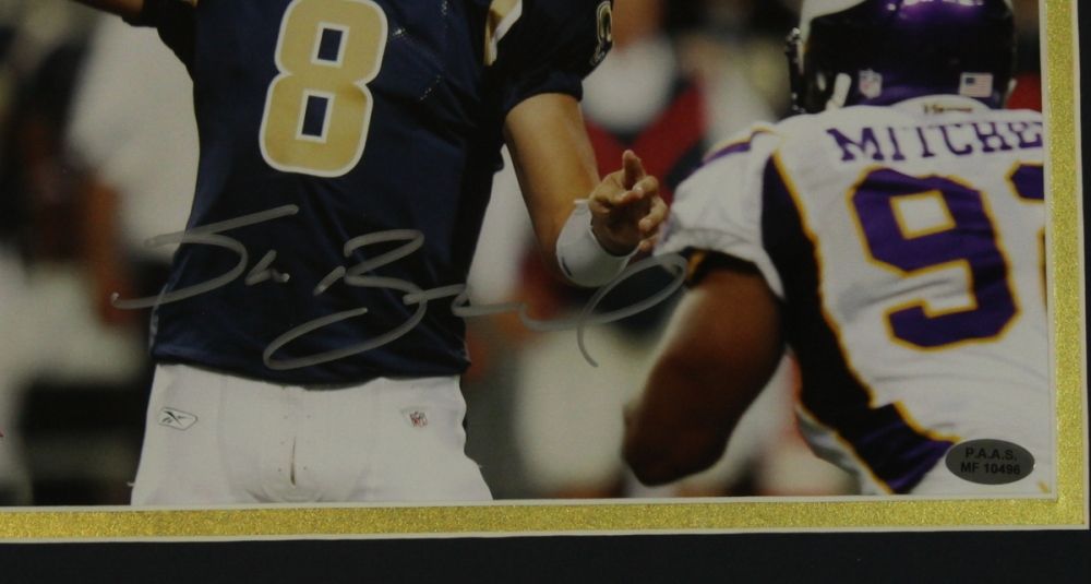 Hand-signed in silver paint-pen by Sam Bradford. Custom framed to 14x18 in size. Autograph includes a Professional Autograph Authentication Services (PAAS) hologram and matching COA for authenticity purposes.