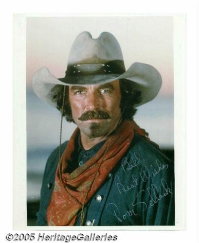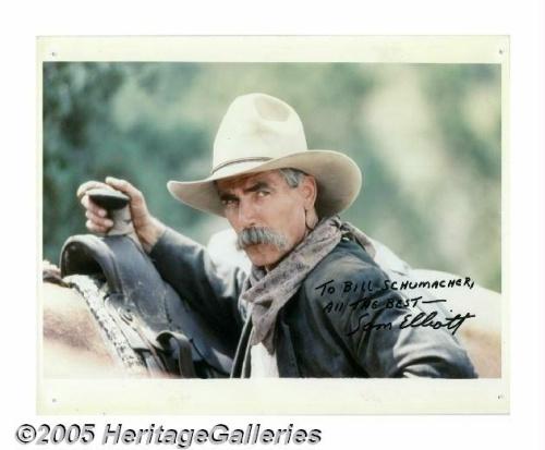 <B>Sam Elliott Signed Photo Plus Other Leading Men Signatures.</B></I> Featured in this lot is a signed photo of Elliott from one of his many Western roles. Also included are signed photos from <B>Tom Selleck, Chuck Connors, George Montgomery, John Russell, Robert Fuller, Jack Elam, Steve Kanaly, Bob Steele</B></I> and <B>Hugh O'Brian.</B></I> <I>With COA from PSA/DNA.</B></I>