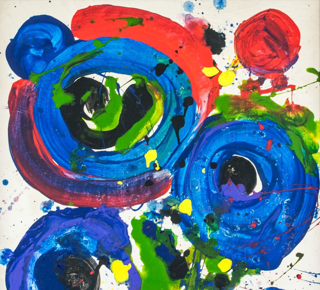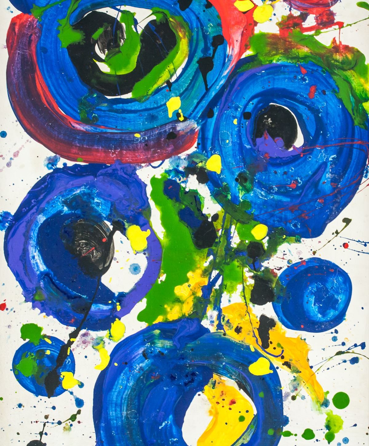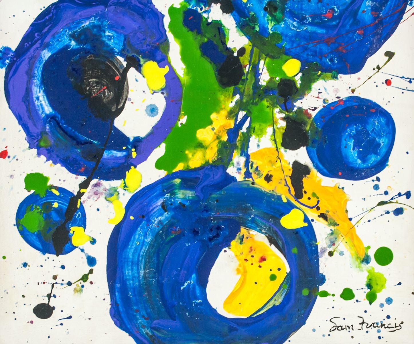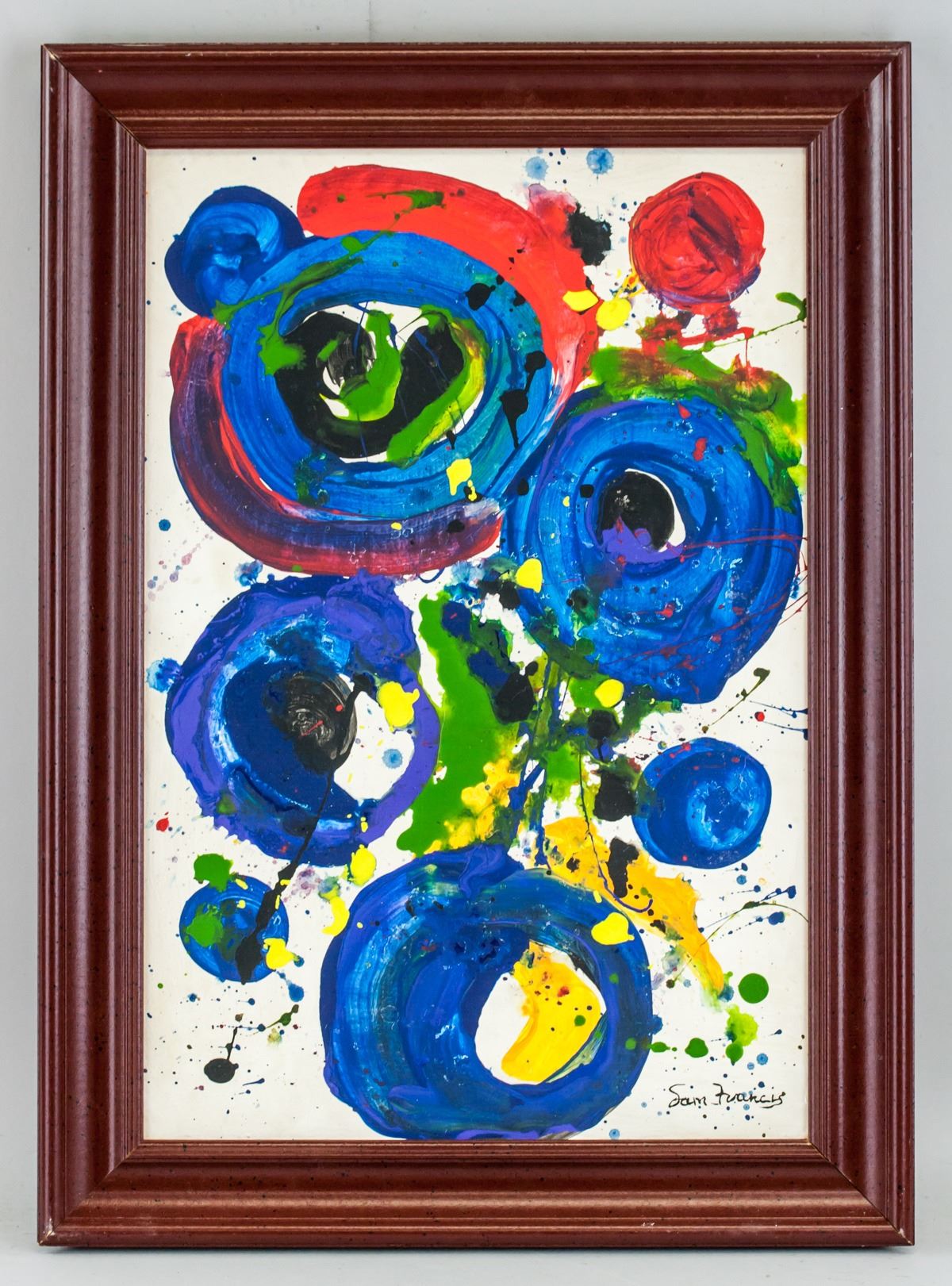 Oil on canvas, stretched and framed. Featuring an abstract expressionist composition. Signed Sam Francis on the lower right corner. Attributed to Sam Francis (1923-1994, American). 49.5 x 33 cm (19.5 x 13.0 inches). Framed size: 59 x 42.5 cm (23.2 x 16.7 inches). PROVENANCE: Southern Ontario estate