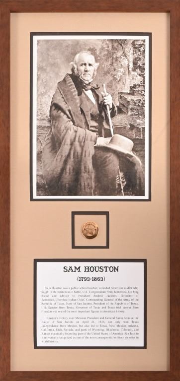 Artist Matthew Brady. 29" x 17". The portrait of General Houston is a pigmented, acid free matte conservation print of the original photograph made in 1861 by acclaimed American photographer Matthew Brady. Brady is best know for his photographs of the Civil War and portraits of Presdient Abraham Lincoln. The Brady Archives are located at Harvard University.