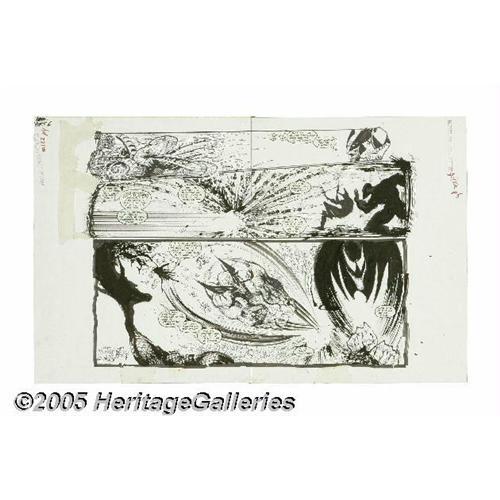 <B>Sam Kieth - Marvel Comics Presents #122 pages 4 and 5 Original Art (Marvel, 1993).</B></I> Wolverine versus Venom -- the mere concept guaranteed a wild and wooly <I>battle royale</B></I>, and Sam Kieth delivered the goods with verve. His manic double-page showdown for ""Nightmares End (Claws and Webs)"" was nothing less than a modern Marvel milestone. The image area of these conjoined pages is 20"" x 15"". The pages were taped together on the back, and the word balloons and captions are stick-ons; otherwise the art is in Excellent condition. <BR><BR><B>Important notice:</B> Heritage usually auctions material at the rate of 200-250 lots per hour. On some occasions eBay Live bid software or the Internet may not be able to keep up with the pace of the auction. We recommend placing a realistic absentee bid now as insurance to avoid disappointment. Occasionally the auctioneer may eliminate or reject an eBay Live bid, and the auctioneer may also reopen a lot after the close of the eBay live bidding (usually because we missed an audience bid), and may reject your bid even if it shows you as the winning bidder. By bidding via eBay Live, you agree that Heritage may award the lot to another bidder at its sole discretion under the circumstances described above or any other reasonable circumstances. Since eBay bids are not shown to us until we open the lot on the floor, we treat those bids just like floor bids. In most cases the floor responds before the eBay bid is presented to us, due to Internet lag time, so for consistency we have made it a policy that floor bids are always considered first over tie eBay live bids. Also please note that all Heritage lots purchased through eBay Live carry a 20% Buyer's Premium. Please make sure you read the Terms and Conditions before you bid. This lot is being auctioned in conjunction with a live floor auction by Heritage Galleries & Auctioneers. All final auction and invoice information will be supplied by Heritage Galleries & Auctionee
