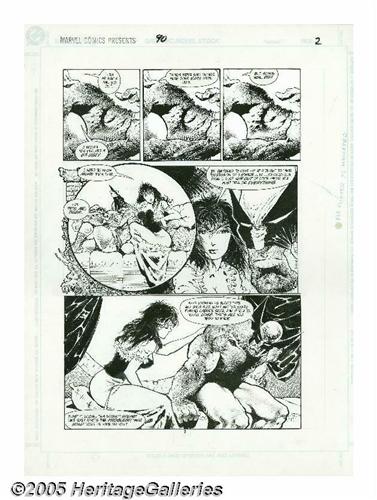 <B>Sam Kieth - Marvel Comics Presents #90, page 2 Original Art (Marvel, 1991).</B></I> Best known for his work on <B>The Maxx</B></I>, Sam Kieth also contributed to the mythos of Wolverine with this ultra-popular story arc. Logan discusses his past involvement with Cyber, with the evanescently beautiful Tiger Tyger, in intricately detailed page from <B>Marvel Comics Presents</B></I> #90. This is part six of the "Blood Hungry" storyline, called "Sixth Scents," and was written by Peter David and drawn by Sam Kieth. The image area measures 10.5" x 15.75" and the work is in Excellent condition. Panel two and three in the top tier are photostats, and not original art.