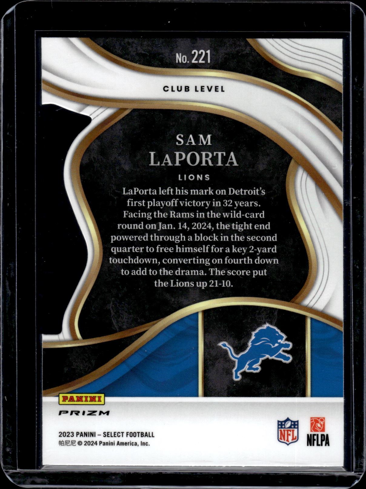 Sam LaPorta Silver Prizm Club Level Die Cut RC 2023 Select #221