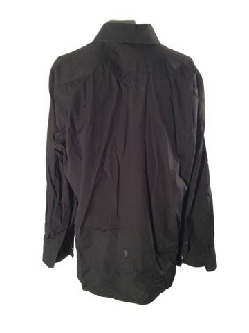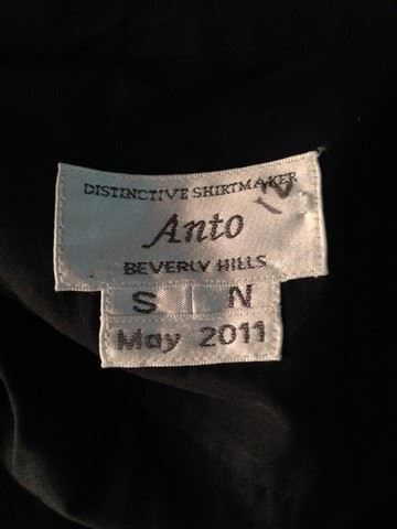 From the personal collection of "Sam Neill", comes his black button up "Anto by Beverly Hills" shirt with long sleeves and the initials "S.N." on the inside collar.