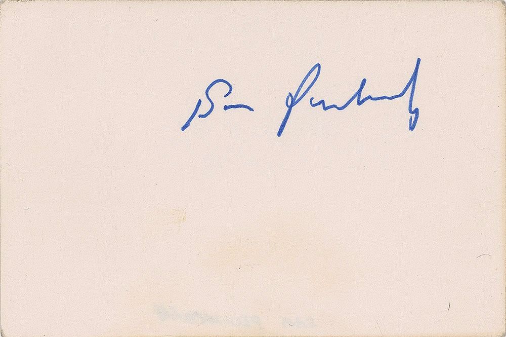 Sought-after felt tip signature, "Sam Peckinpah,” on an off-white 6 x 4 card. In fine condition. From the Harvey and Rhoda Kuflik Collection.