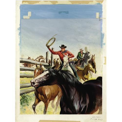 Sam Savitt - Western Roundup #20 Cover Original Art Sam Savitt - Western Roundup #20 Cover Original
