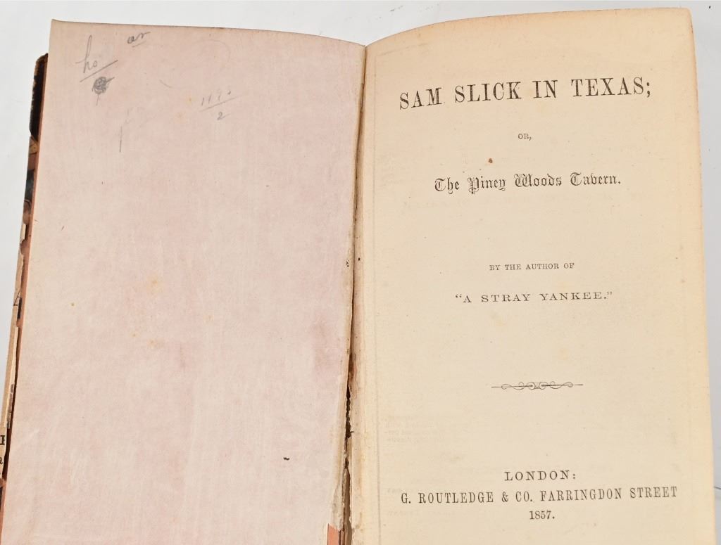 Sam Slick in Texas: or The Piney Woods Tavern. Published by G. Routledge & Co. London 1857.