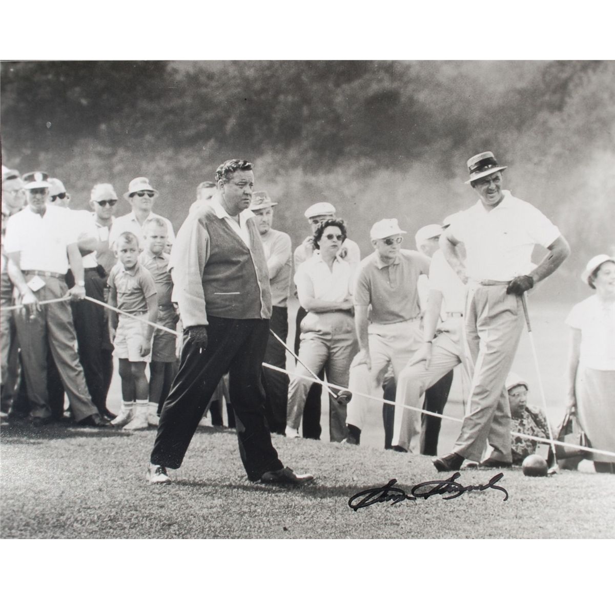 8x10 photo of Jackie Gleason and Sam Snead playing golf. Signed in black sharpie by Snead.
