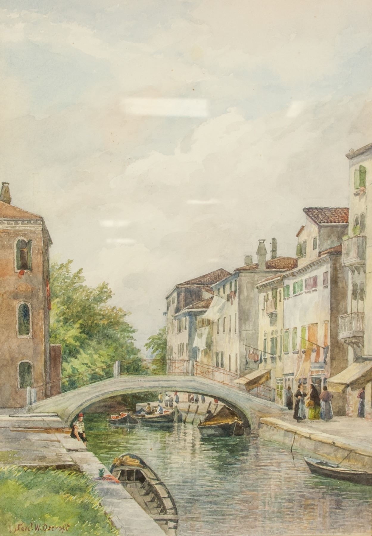 Watercolor on paper framed, city and river landscape scene. Signed on lower left corner. 14.5 x 10 inch, 37 x 26 cm