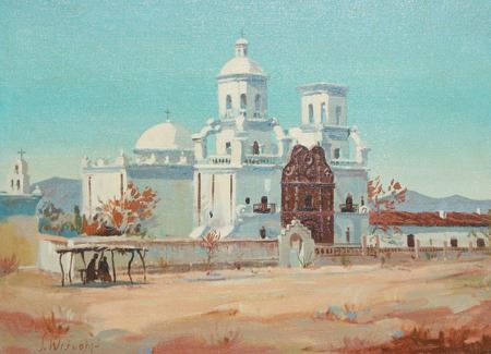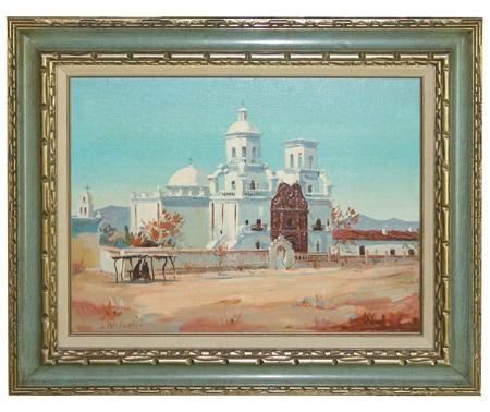 Ca. 1975, Beautiful signed original "San Xavier Del Rac, Tucson, AZ." Very good condition. 18" x 24" (26" x 32" framed)