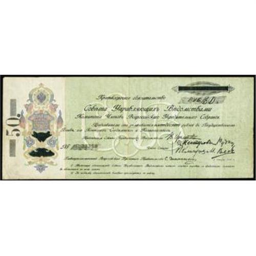 <style type="text/css"> body, td, th { font-family: Arial, Helvetica, sans-serif; font-size: 12px; color: #482424; margin: 0px; padding: 0px; } #header { background-image: url(http://www.bowersandmerena.com/ebay/images/template_v3_01.gif); clear: both; background-color: #590303; border-top-width: 2px; border-top-style: solid; border-top-color: #B38C4F; } #header #header_wrapper { height: 75px; clear: both; width: 800px; margin-right: auto; margin-left: auto; background-image: url(http://www.bowersandmerena.com/ebay/images/template_v3_03.gif); background-repeat: no-repeat; background-position: right; color: #F3EDCC; } #header #header_wrapper #header_logo { float: left; height: 75px; width: 444px; background-image: url(http://www.bowersandmerena.com/ebay/images/template_v3_02.gif); background-repeat: no-repeat; font-size: 10px; text-transform: capitalize; color: #B38C4F; } #header #header_wrapper #header_right { float: left; height: 75px; width: 356px; text-align: right; } #header #header_wrapper #header_right #headerLoginBtn { margin-bottom: 30px; } #header #header_wrapper #header_right input#txtSearch { color: #B49056; border: 1px solid #B49056; width: 175px; padding-top: 3px; padding-right: 3px; padding-bottom: 4px; padding-left: 3px; } #nav { height: 37px; background-image: url(http://www.bowersandmerena.com/ebay/images/template_v3_05.gif); clear: both; } #nav #nav_wrapper { height: 35px; width: 800px; margin-right: auto; margin-left: auto; border-left-width: 1px; border-left-style: solid; border-left-color: #B38C4F; } #nav #nav_wrapper a { padding-right: 15px; padding-left: 15px; border-right-width: 1px; border-right-style: solid; border-right-color: #B38C4F; height: 25px; padding-top: 10px; display: block; float: left; text-decoration: none; font-weight: bold; color: #5D0303; } #nav #nav_wrapper a:hover { color: #B38C4F; } #nav #nav_wrapper #search { float: right; padding-top: 7px; } #nav #nav_wrapper #search #txtSearch { font-family: Arial, Helvetica, sans-serif; font-size: 10px; text-transform: uppercase; color: #D2AE75; border: 1px solid #B38C4F; padding: 3px; } #content_bgd { background-image: url(http://www.bowersandmerena.com/ebay/images/template_v3_09.gif); background-repeat: repeat-y; background-position: center; padding-top: 15px; padding-bottom: 15px; background-color: #FBFBDB; } #content_wrapper { clear: both; height: auto; width: 800px; margin-right: auto; margin-left: auto; } .LotDetailWhite { line-height:normal; font-size:13px; font-family: arial,helvetica,sans-serif; color: White; font-weight: bold; } .LotDetailInformation { line-height:normal; font-size: 13px; font-family: arial,helvetica,sans-serif; } .LotDetailMessage { line-height:normal; font-size: 13px; font-family: arial,helvetica,sans-serif; color: red; } } tr.HeaderAuctionTitle td { color: #000000; font-weight: bold; padding: 2px; background-image: url(http://www.bowersandmerena.com/ebay/images/template_v3_05.gif); background-repeat: repeat-x; border-bottom-width: 1px; border-bottom-style: solid; border-bottom-color: #B38C4F; } table.AuctionSummary a, table.AuctionSummary a:link, table.AuctionSummary a:visited { color: #0000FF; text-decoration: none; } } td.tableHeaderLeft { border-left-width: 1px; border-left-style: solid; border-left-color: #B38C4F; } td.tableHeaderRight { border-right-width: 1px; border-right-style: solid; border-right-color: #B38C4F; } td.tableCellMiddle { border-left-width: 1px; border-left-style: solid; border-left-color: #B38C4F; border-right-width: 1px; border-right-style: solid; border-right-color: #B38C4F; padding: 5px; } tr.footer td { border-top-width: 1px; border-top-style: solid; border-top-color: #B38C4F; } </style> </head> <body> <div id="header"> <div id="header_wrapper"> <div id="header_logo"> </div> <div id="header_right"> </div> </div> </div> <div id="nav"> <div id="nav_wrapper"> <a href="http://www.bowersandmerena.com">Our eBayLive Auctions</a> <a href="#PaymentInfo">Payment Information</a> <a href="#ShippingInfo">Shipping Information</a> <a href="#About">About Bowers and Merena</a> </div> </div> <div id="content_bgd"> <div id="content_wrapper"> <table width="100%" border="0" cellpadding="5" cellspacing="0" class="AuctionSummary"> <tbody> <tr class="HeaderAuctionTitle" style="height: 25px;"> <td align="left" class="tableHeaderLeft" > </td> <td align="center" class="tableHeaderRight"> <span style="font-size: large;">Lot #2169. Siberia & Urals. Samara Directory (Komuch), 1918 Bills of Exchange Issue.</span> </td> </tr> <tr> <td colspan="3" class="tableCellMiddle"> Lot of 5 notes. All are 1918 Issues. Includes 50 Rubles, P-S807, XF; 100 Rubles, P-S808, VF+ to XF; 250 Rubles, P-S809, VF to VF+; 500 Rubles, P-S810, XF; 1000 Rubles, P-S811, AU+ to Unc. Rare set in high grade. Notes are only priced in Fine in SCWPM.