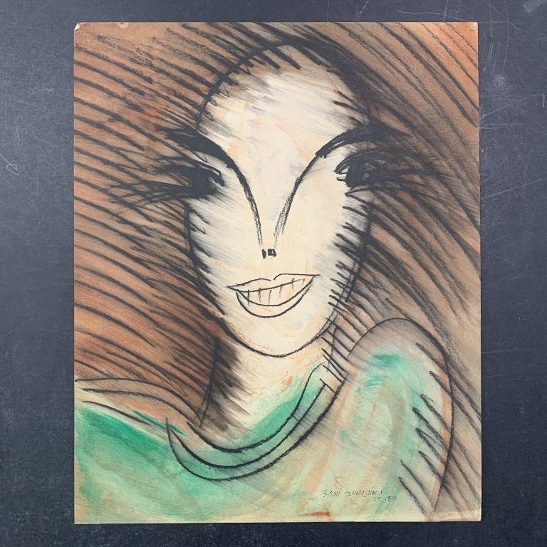 Sami Suomalainen, Untitled, Original on Paper. A portrait done in browns, greens and white. This piece is signed in the lower middle right corner. It is in excellent condition.