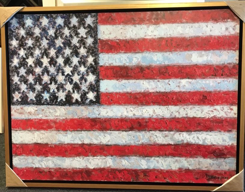 One Samir Sammoun (American Flag )FREEDOM . Giclee on canvas . Height is 34 inches. Width is 44 inches. The shipping charge for this item is $70.