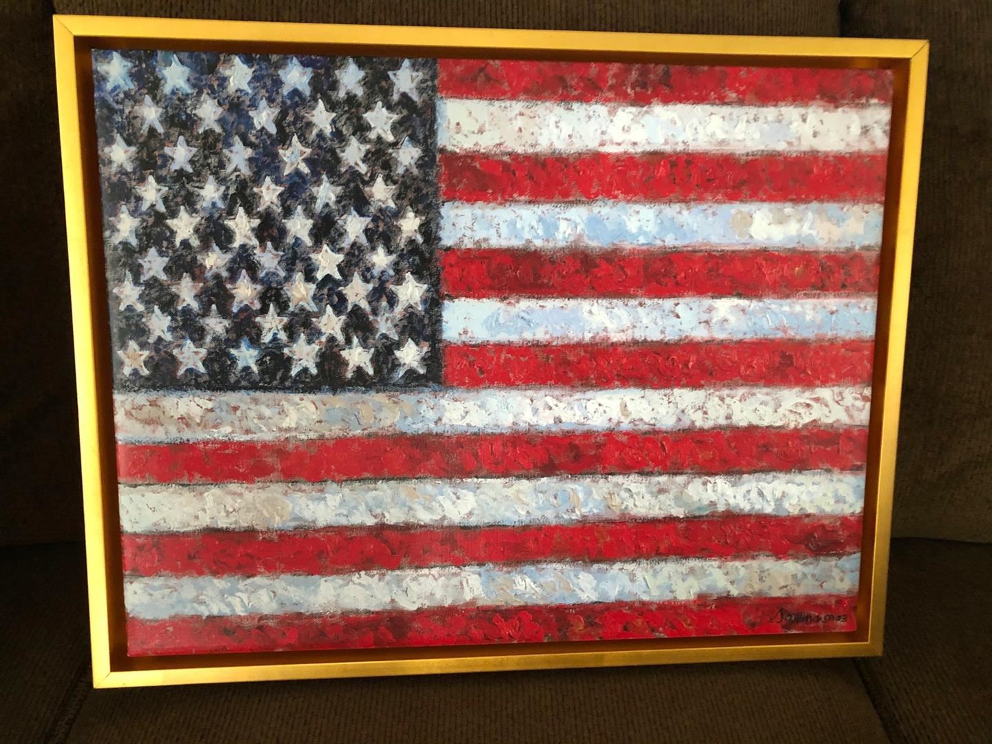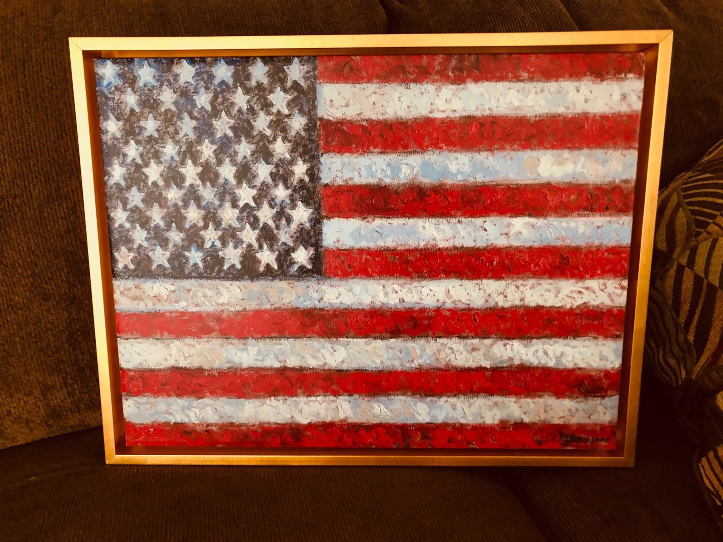 One Samir Sammoun "FREEDOM" homage to Johns, mini Flag. Giclee on Canvas