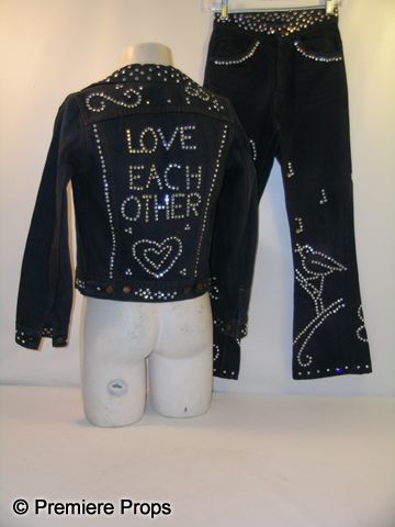 From Sammy Davis Jr.'s personal collection is his stage worn elaborate and incredibly detailed dark blue denim Levis jacket with rhinestone emblems on the shoulders and 'Love Each Other' inscribed in rhinestone on the back. Also comes with a pair of dark blue denim 'Levis' jeans with a floral rhinestone pattern on the pant legs. A very rare handmade and rich costume ensemble from the Sammy Davis Jr. Collection. This piece comes directly from a personal friend and jeweler of Sammy Davis, Jr. A letter of provenance will be provided.
