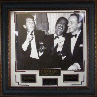 The Rat Pack was a group of actors originally centered on Humphrey Bogart. In the mid-1960s it was the name used by the press and the general public to refer to a later variation of the group, after Bogart's death, that called itself "the Summit" or "the Clan," featuring Frank Sinatra, Dean Martin, Sammy Davis, Jr., Peter Lawford and Joey Bishop; they appeared together on stage and in films in the early 1960s, including the movies Ocean's 11,Sergeants 3, and Robin and the 7 Hoods. Sinatra, Martin, and Davis were regarded as the group's lead members. This is a Rat Pack Vintage B&W 16x20 Photo w/ custom premium leather framed unautographed Replica Signature Engraved oversize 29x29 piece.