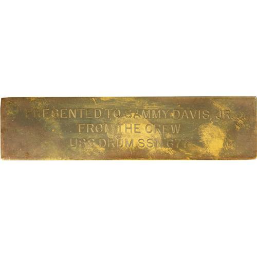 <B>Sammy's Plaque from the Crew of the USS Drum.</B></I> A 9" x 10" wood and metal plaque presented to Sammy by the crew of the <I>USS Drum</B></I> during a visit to the submarine. In Excellent condition. <I>From the Sammy Davis Jr. Estate.</B></I>