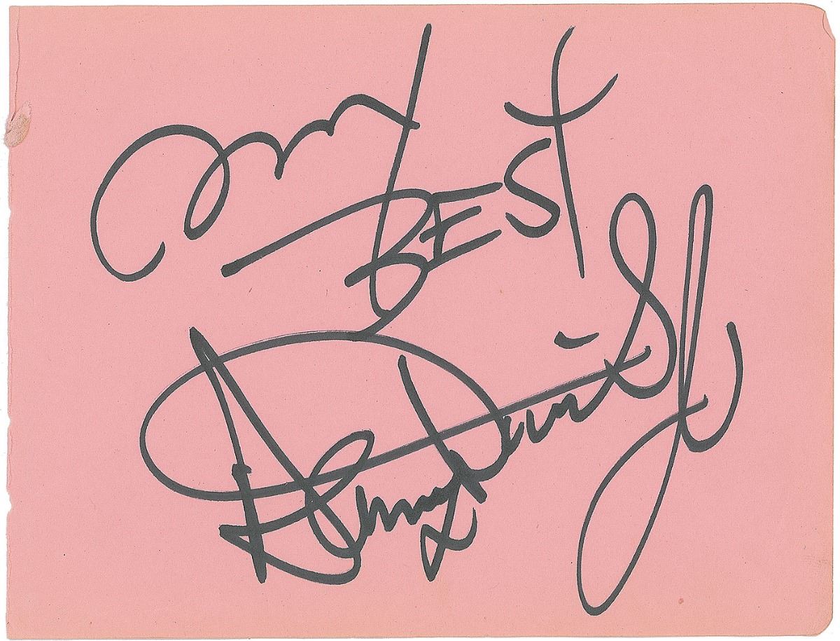 Large felt tip signature, “My best, Sammy Davis, Jr.,” on a pink 6 x 4.75 album page. In fine condition.