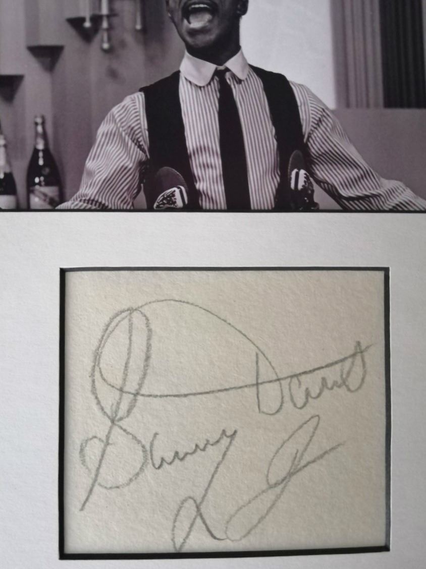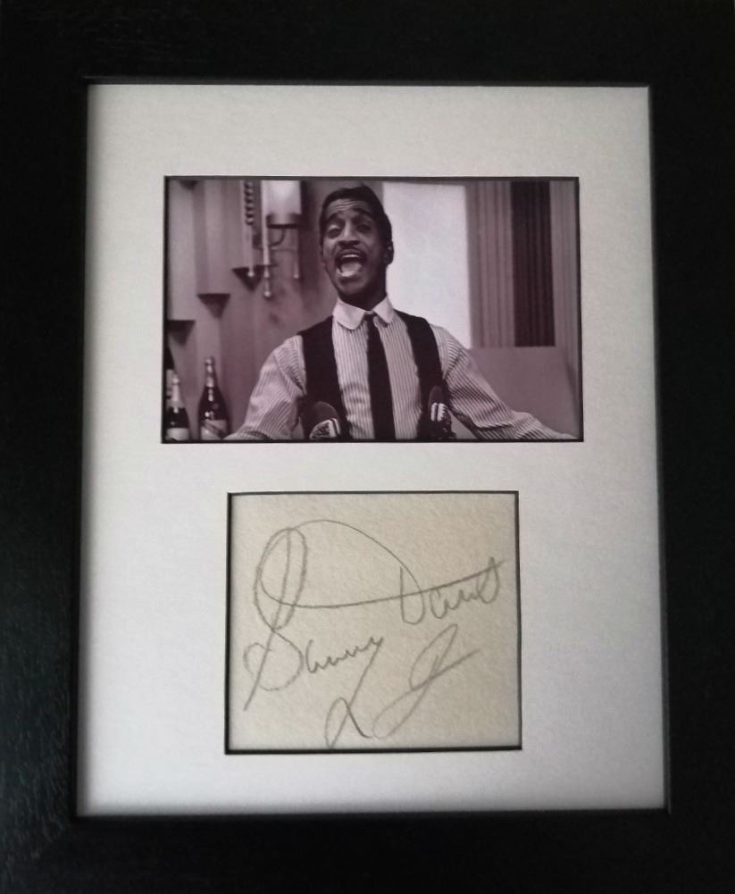 Samuel George Davis Jr. was an American singer, musician, dancer, actor, vaudevillian and comedian. He was noted for his impressions of actors, musicians, and other celebrities. At the age of three, Davis began his career in vaudeville with his father, Sammy Davis Sr. and the Will Mastin Trio, which toured nationally. Autograph mounted and framed and supplied with coa.