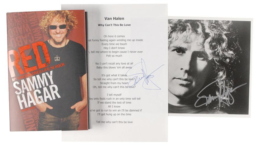 Three items: a first edition of Red, signed on the first free end page in red felt tip; printed souvenir lyrics to ‘Why Can’t This Be Love,’ signed in blue ink; and a glossy 10 x 8 photo, signed in silver ink. In fine condition.