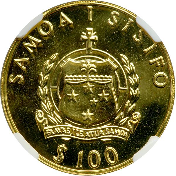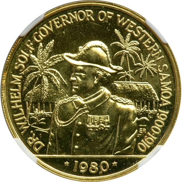 Samoa. 100 Tala, 1980. KM-42. Weight 0.2211 ounce. Governor Wilhelm Solf. NGC graded MS-67.