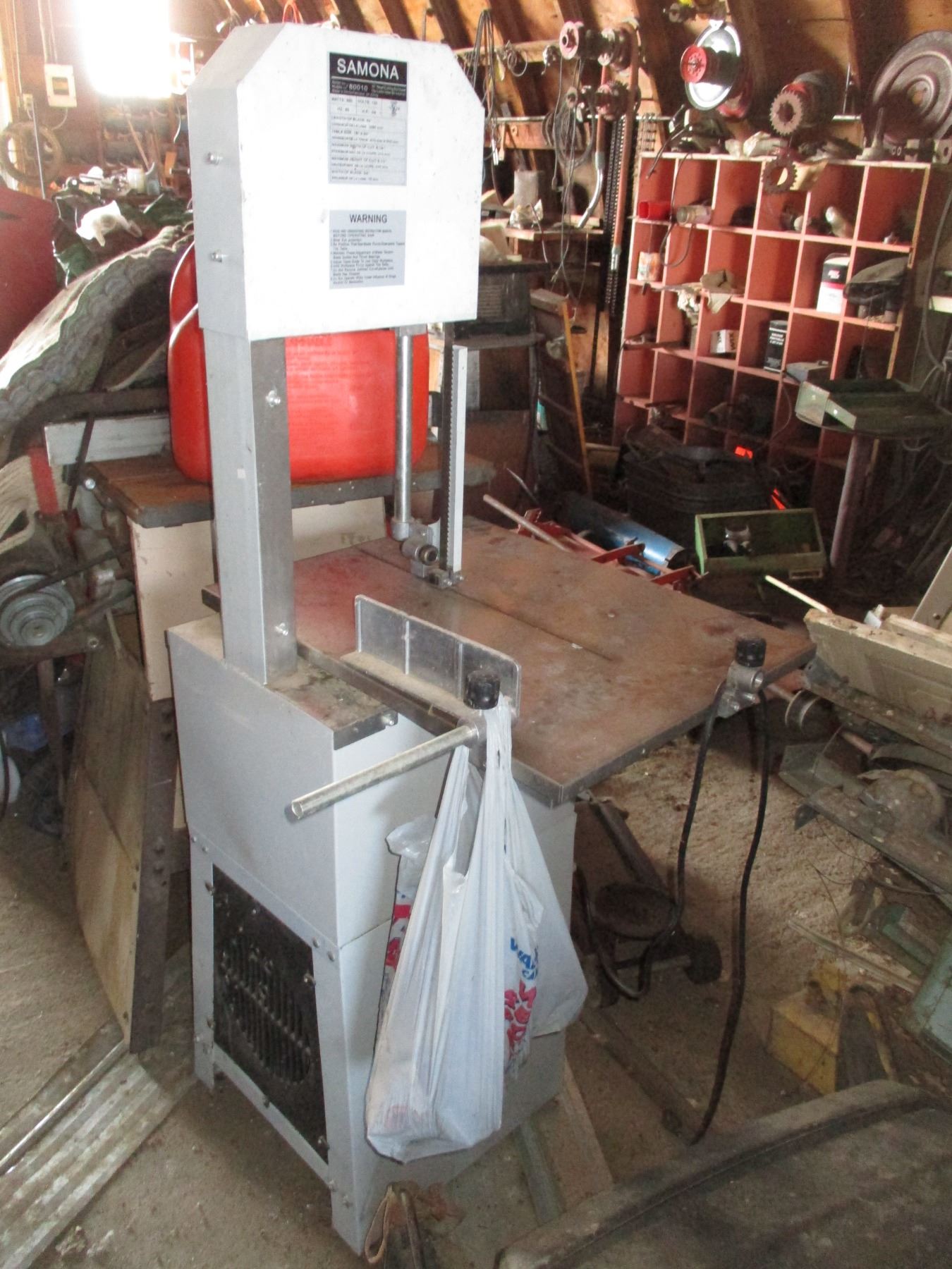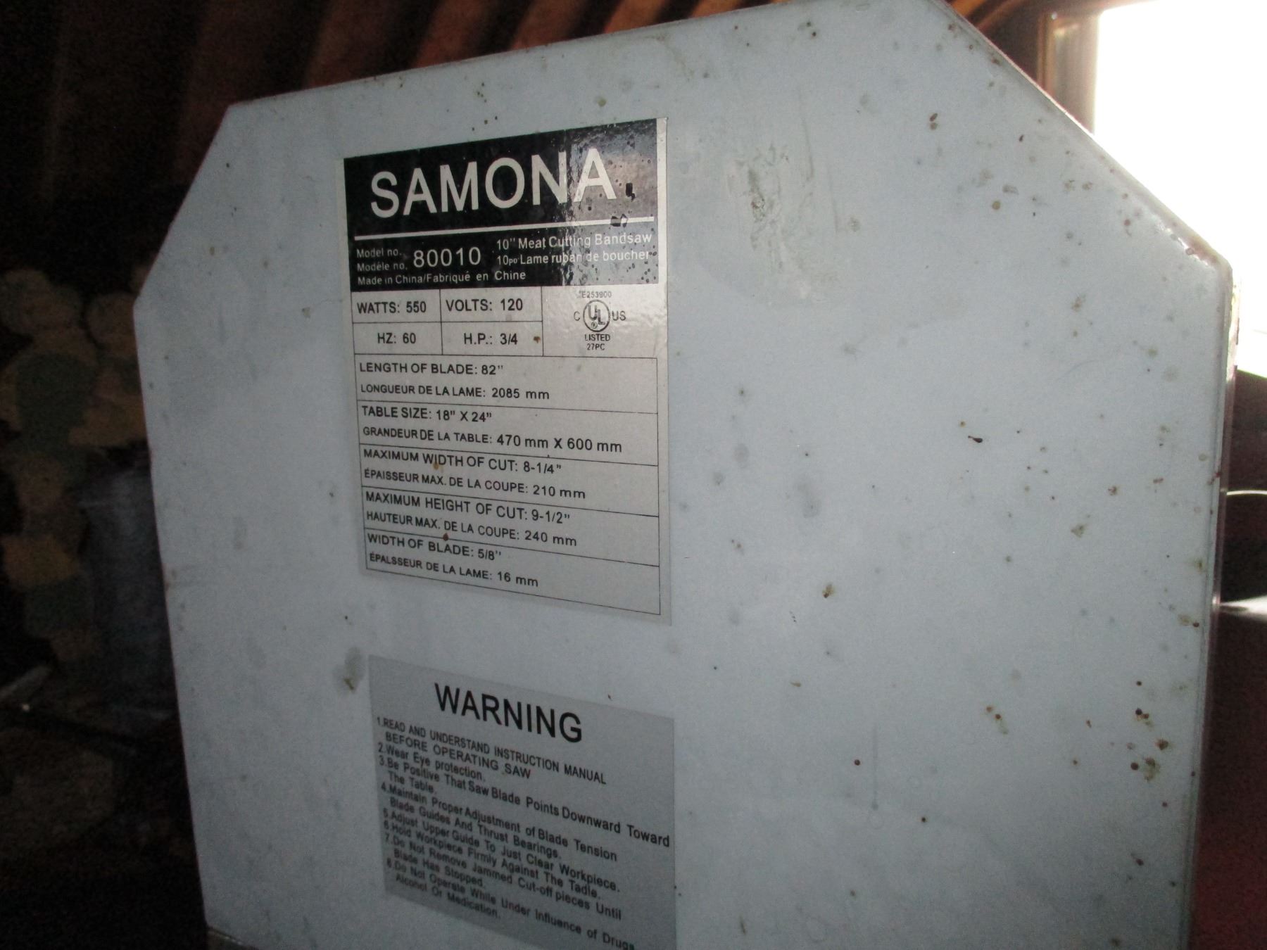 Samona 10" Meat Bandsaw on stand, with grinder attachments + manual