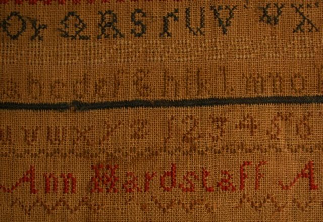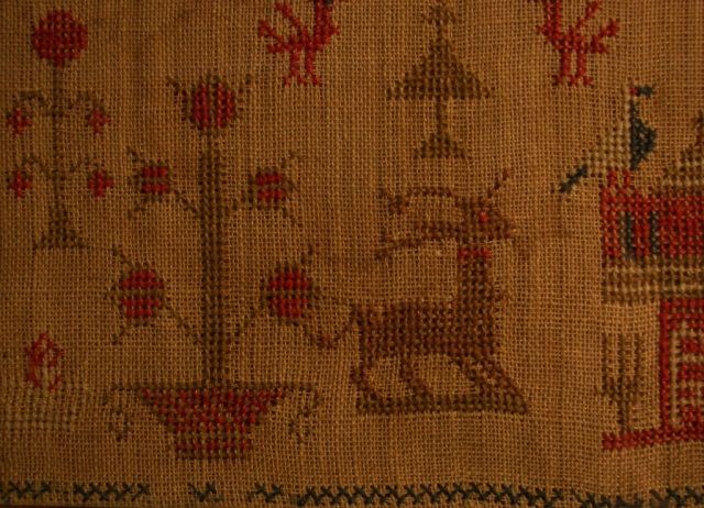 Sampler, Early 1800's, Sampler, Early 1800's, Wonderful color, Fair condition, Castle, birds, deer and flowers, By Ann Hardstaph Age 11, 11" x 10" sight,