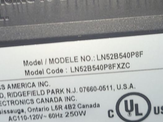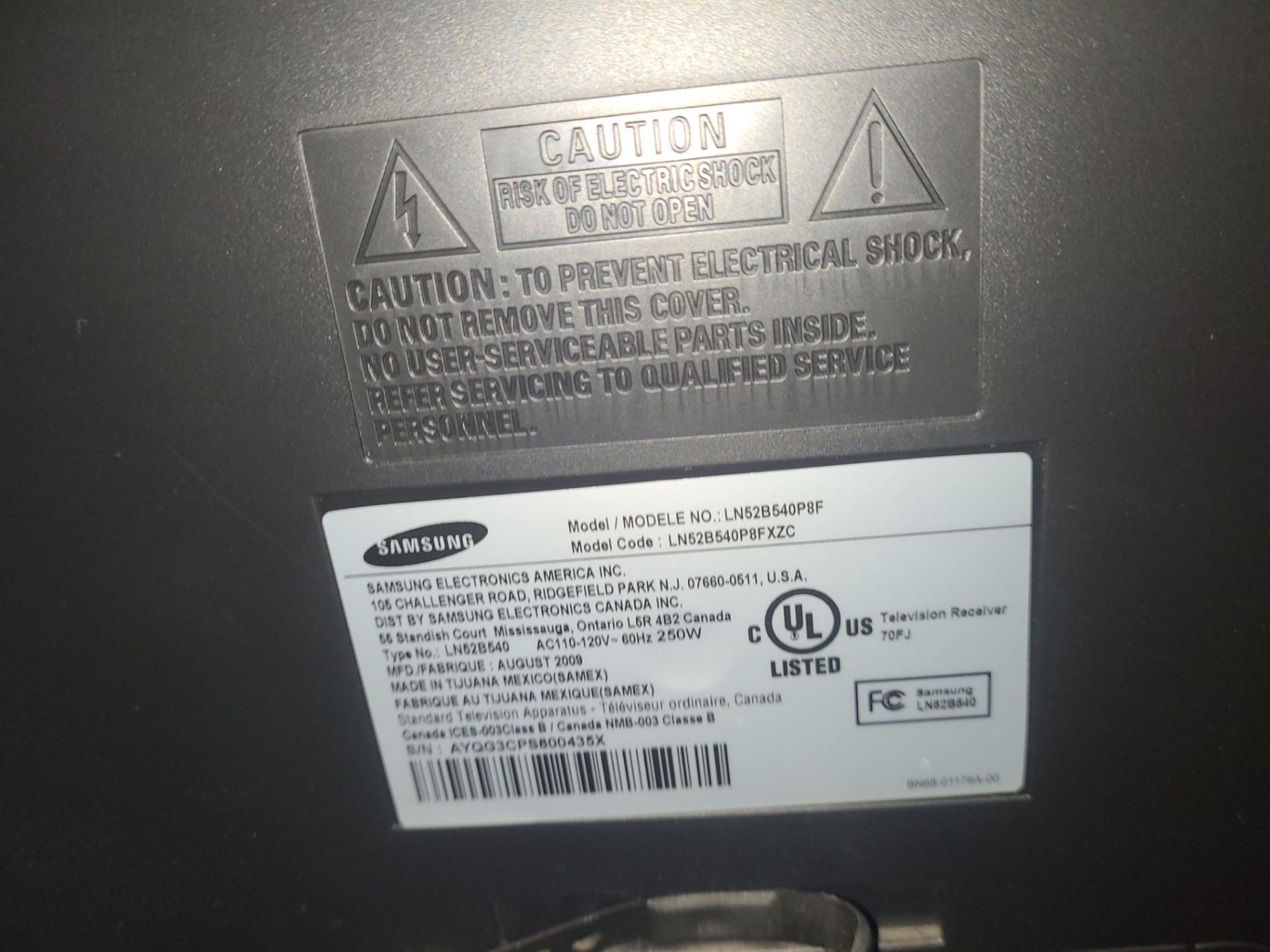 Samsung HDTV Model LN52B540P8F w/ Remote