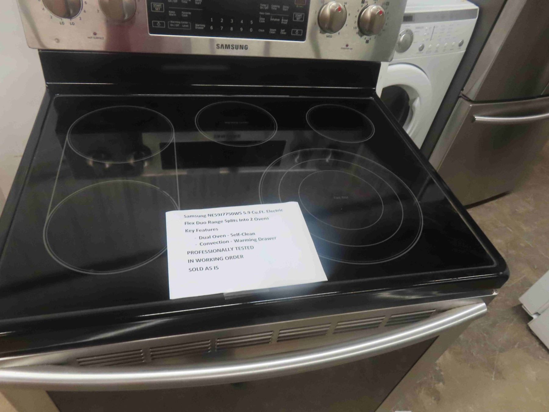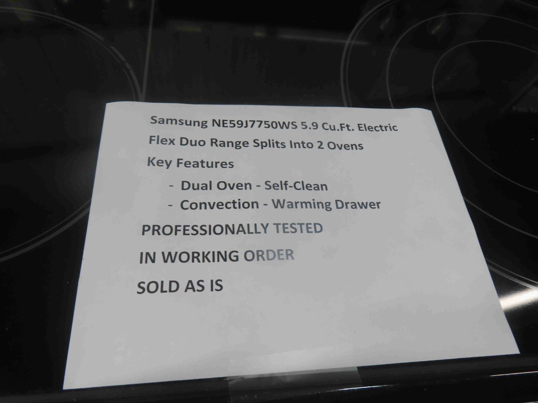 Samsung NE 59 J 7750 WS 5.9Sq.ft ElecFlex Duo Range Split Into 2 Ovens, Featuring Dual Oven, Self Clean Convection Warming Drawer