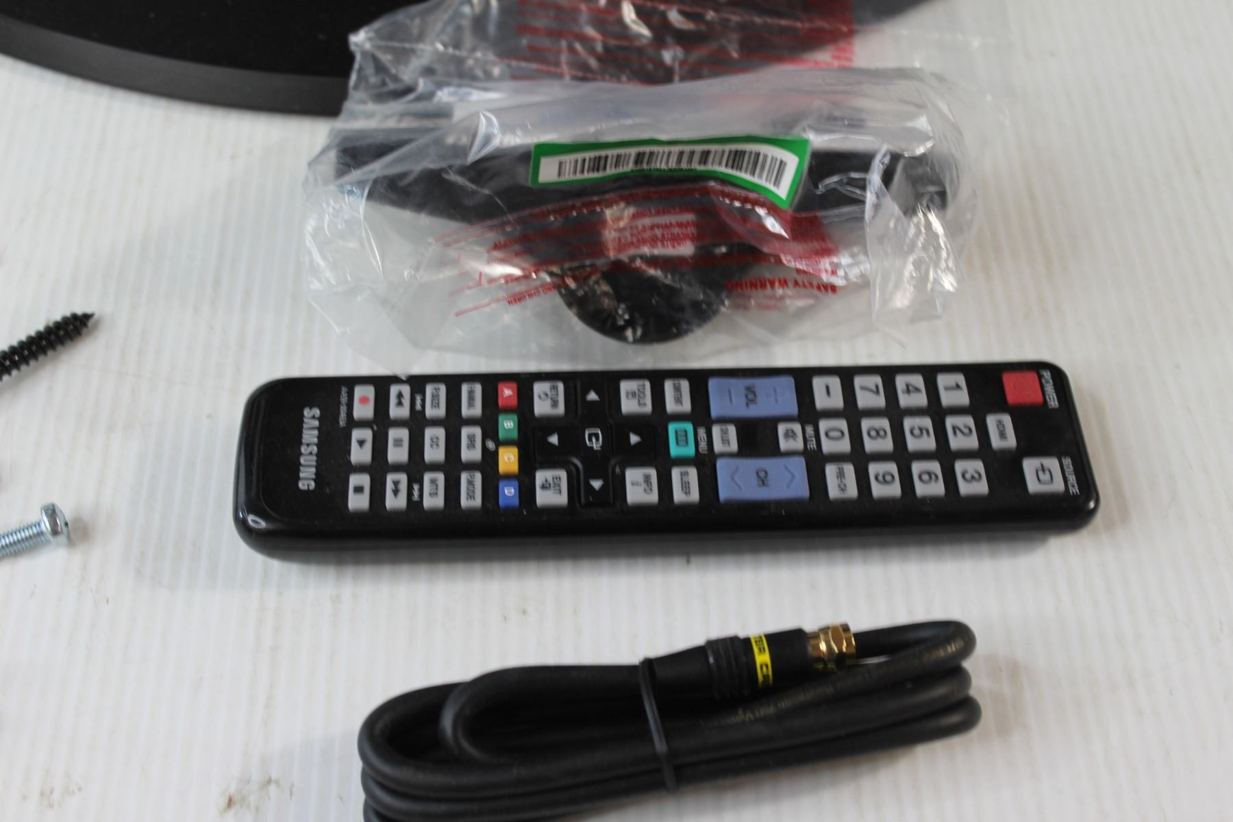 Samsung TV with Remote - Untested, Monster Cable, TV Wall Mount, (20) Bolts - Varying Sizes, Misc.