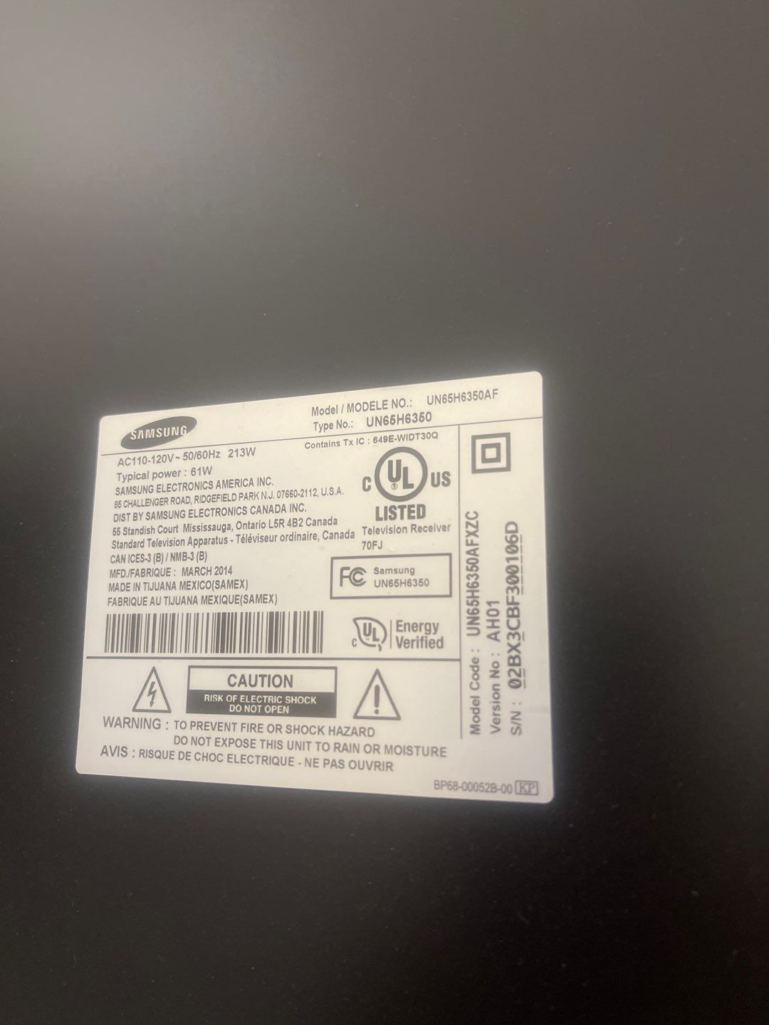 Power Bar- Model#UN65H6350AF