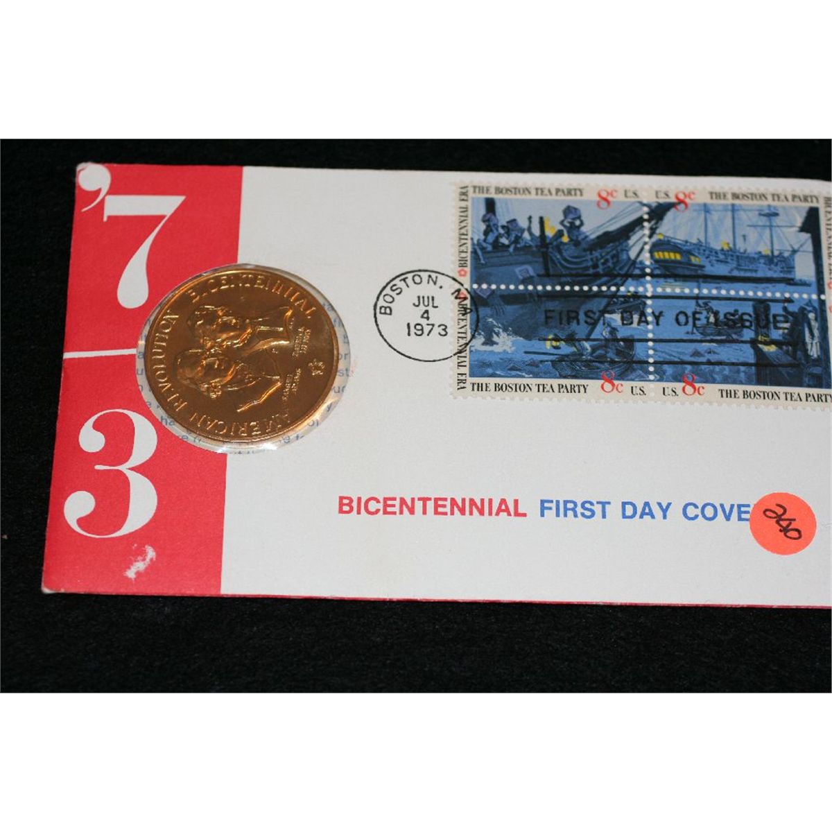 Samuel Adams/Patrick Henry Bicentennial First Day Cover commerative medal w/stamps