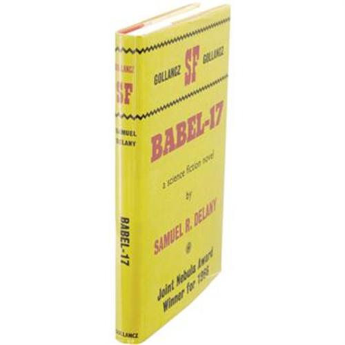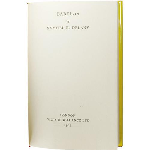 <B>Samuel Delany:<I> Babel-17.</B></I></B></I> (London: Victor Gollancz, 1967), first hardcover edition, 192 pages, red cloth with gilt titles, 8vo (5.5" x 8"), fine in a fine unclipped jacket. Co-winner of the 1966 Nebula award for best novel. <I>From the Ventura Collection.</B></I><BR><BR><b>Shipping:</b> Books & Catalogs (<a target="_blank" href="http://www.heritageauctions.com/common/shipping.php">view shipping information</a>) <BR><BR><B>Important n
