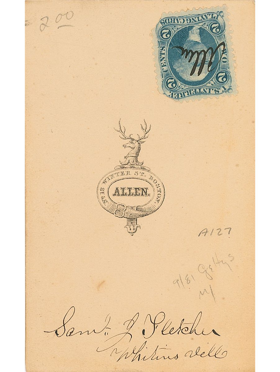 Union officer who served with the 15th Massachusetts and was wounded at Antietam and Gettysburg. Original 2.25 x 4 carte-de-visite photo by Allen of Boston, signed on the reverse in black ink, “Saml. J. Fletcher, Whitins Nell.” In fine condition, with a revenue stamp and pencil notations to reverse.