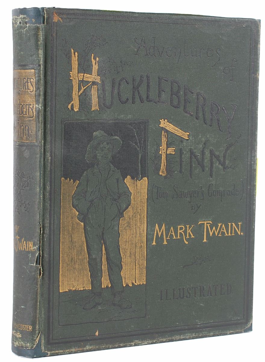 Unsigned book: Adventures of Huckleberry Finn. First American edition, first printing (containing all traditional points of issue as well as the erroneous page reference “88” on page 13; the misprint “with the was” on page 57; and the misprint “Decided” on page 9). NY: Charles L. Webster and Company, 1885. Hardcover, 7 x 8.75, 366 pages. Book condition: VG-/None (rebacked). Adventures of Huckleberry Finn was controversial upon its release and banned from several public libraries over objections to its perceived crudeness; nevertheless it has always been incredibly popular. Often cited as ‘The Great American Novel,’ this first edition of Huckleberry Finn is deserving of a place in any literary collection.